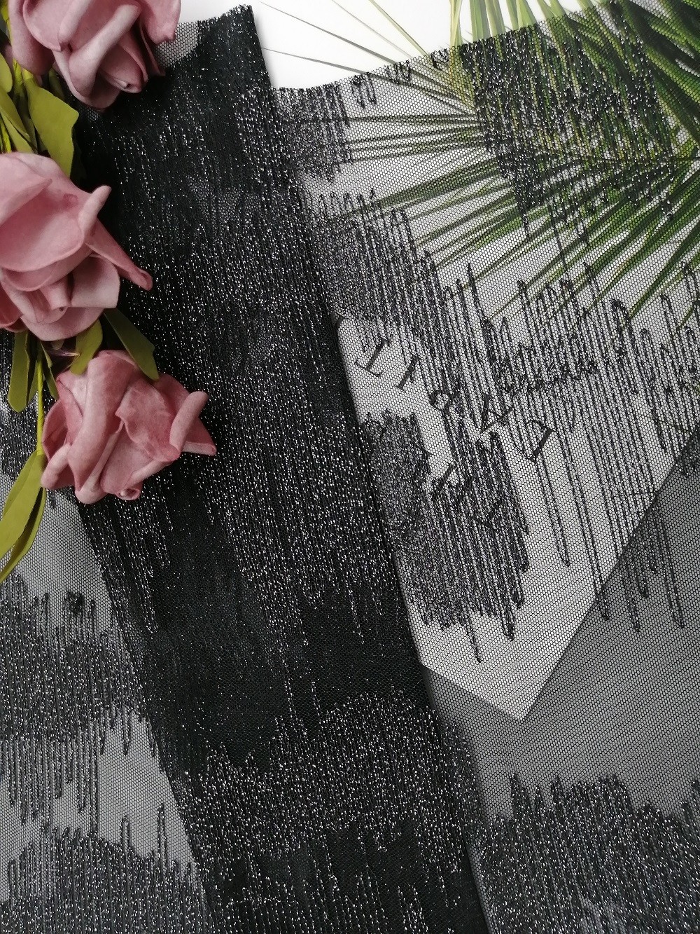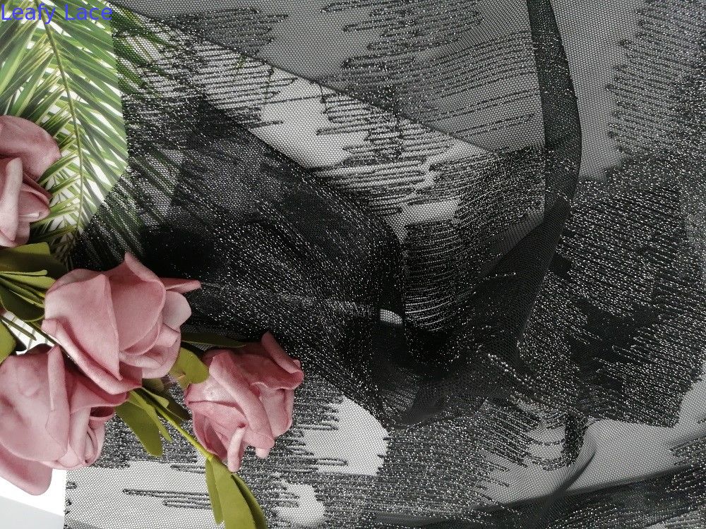 - Lurex黒い金属銀製ヤーンの幾何学的なラインは女性のためのGarment Female Dressesレースの生地を、スカート、女の子の服、家の織物、カーテン、寝具の記事、服装、帽子、ウェディング ドレス、ブラウス、等刺繍した。