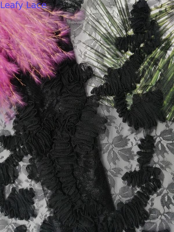 女性の長いスカートの服の衣服の女の子の服、家の織物、カーテン、寝具の記事、服装、帽子、ウェディング ドレス、ブラウス、等のためのレースのアップリケ刺繍の生地のイブニング・ドレスの生地のテュルの黒い花のレース。