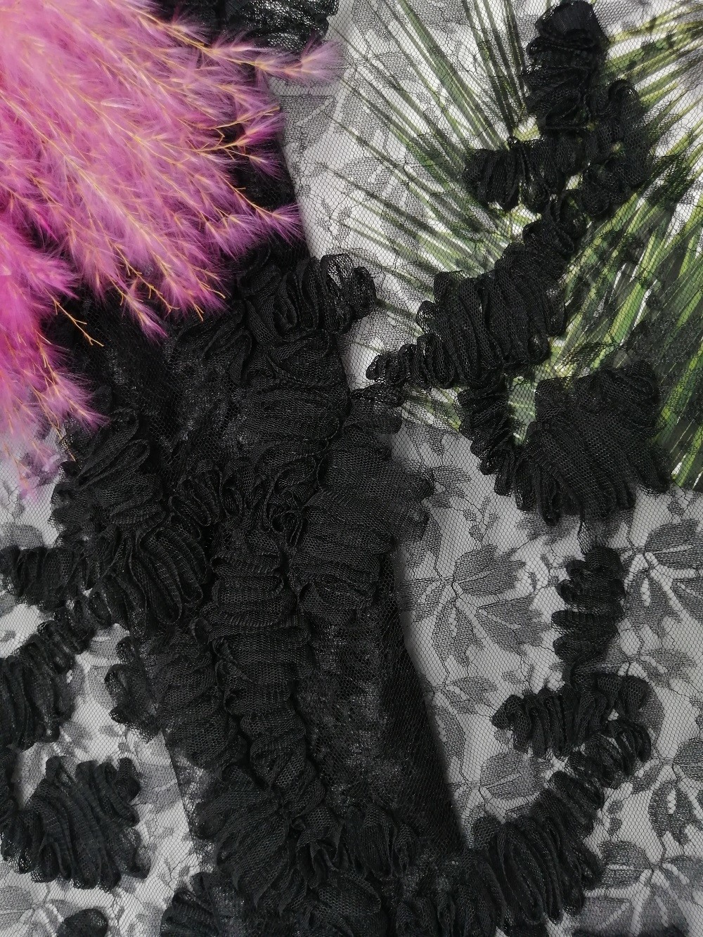 | ハイライト: | 黒い花のアップリケ刺繍の生地,125CMの花のアップリケ刺繍の生地,125CMのレースの花の刺繍の生地 |