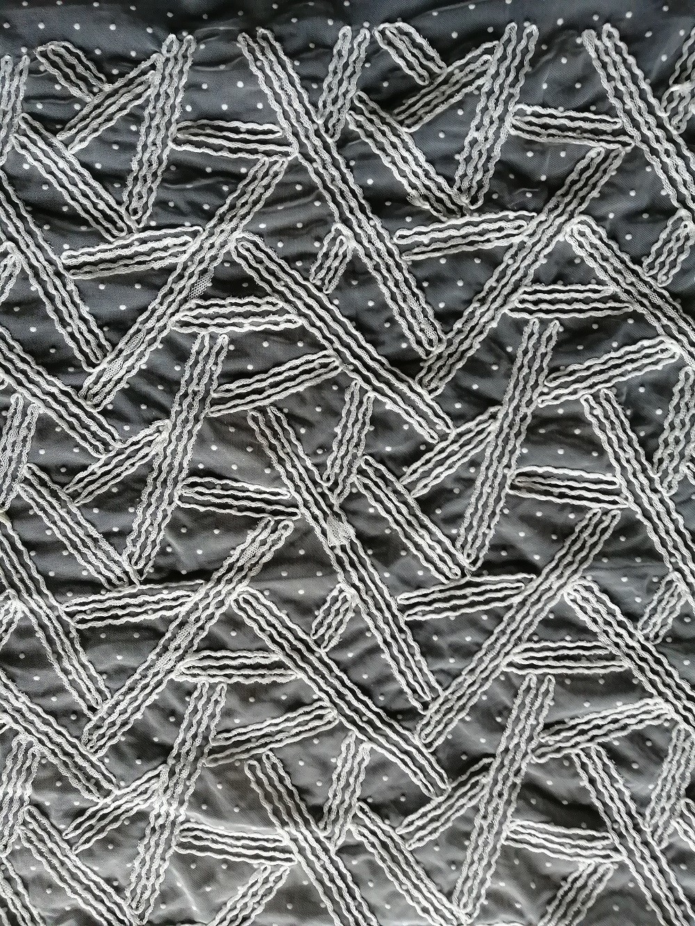 | ハイライト: | 142CMの白いアップリケの生地,142CMの3Dアップリケ刺繍の生地,白い3Dアップリケ刺繍の生地 |