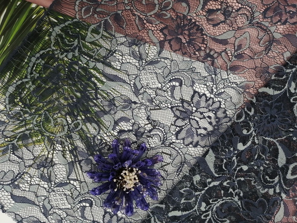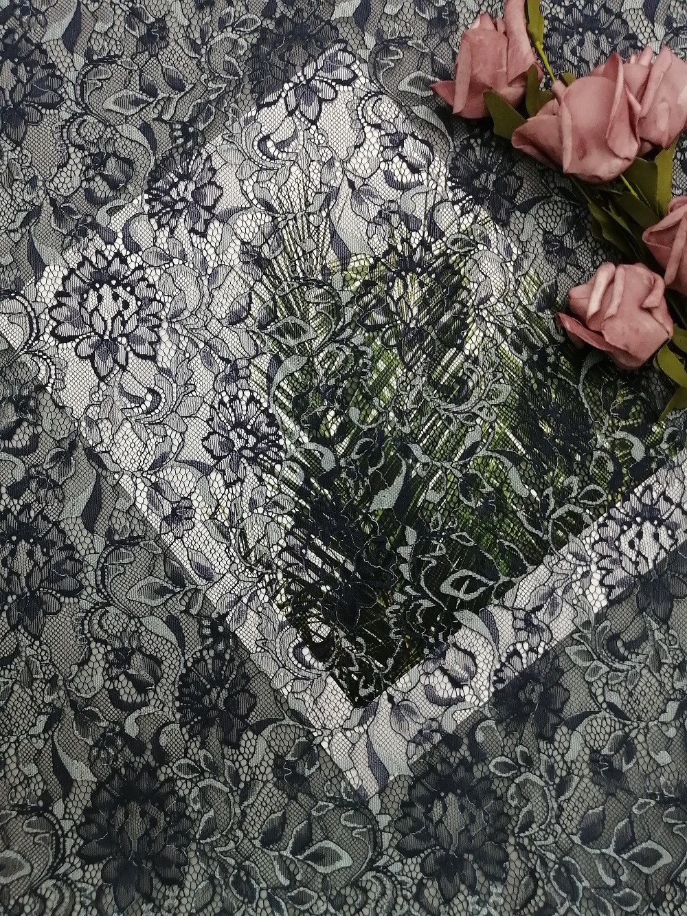 | ハイライト: | 2つの調子の刺繍のレースの生地,2つの調子のフランスのChantillyのレースの生地,145CMフランスのChantillyのレースの生地 |