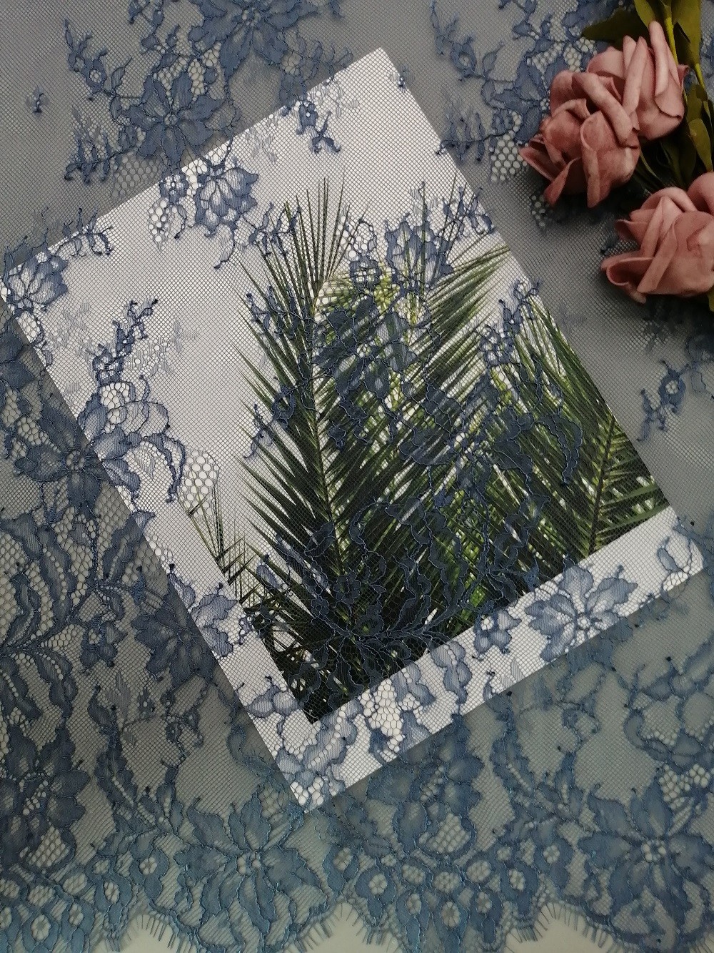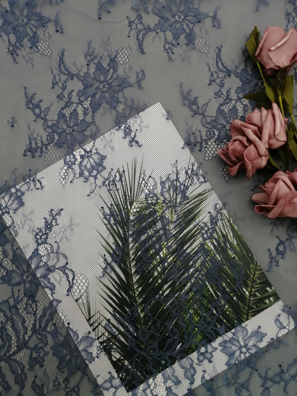 ハイライト: | 145CMフランスのChantillyのレースの生地,スカイ ブルーのフランスのChantillyのレースの生地,145CM Chantillyテュルのレースの生地 |