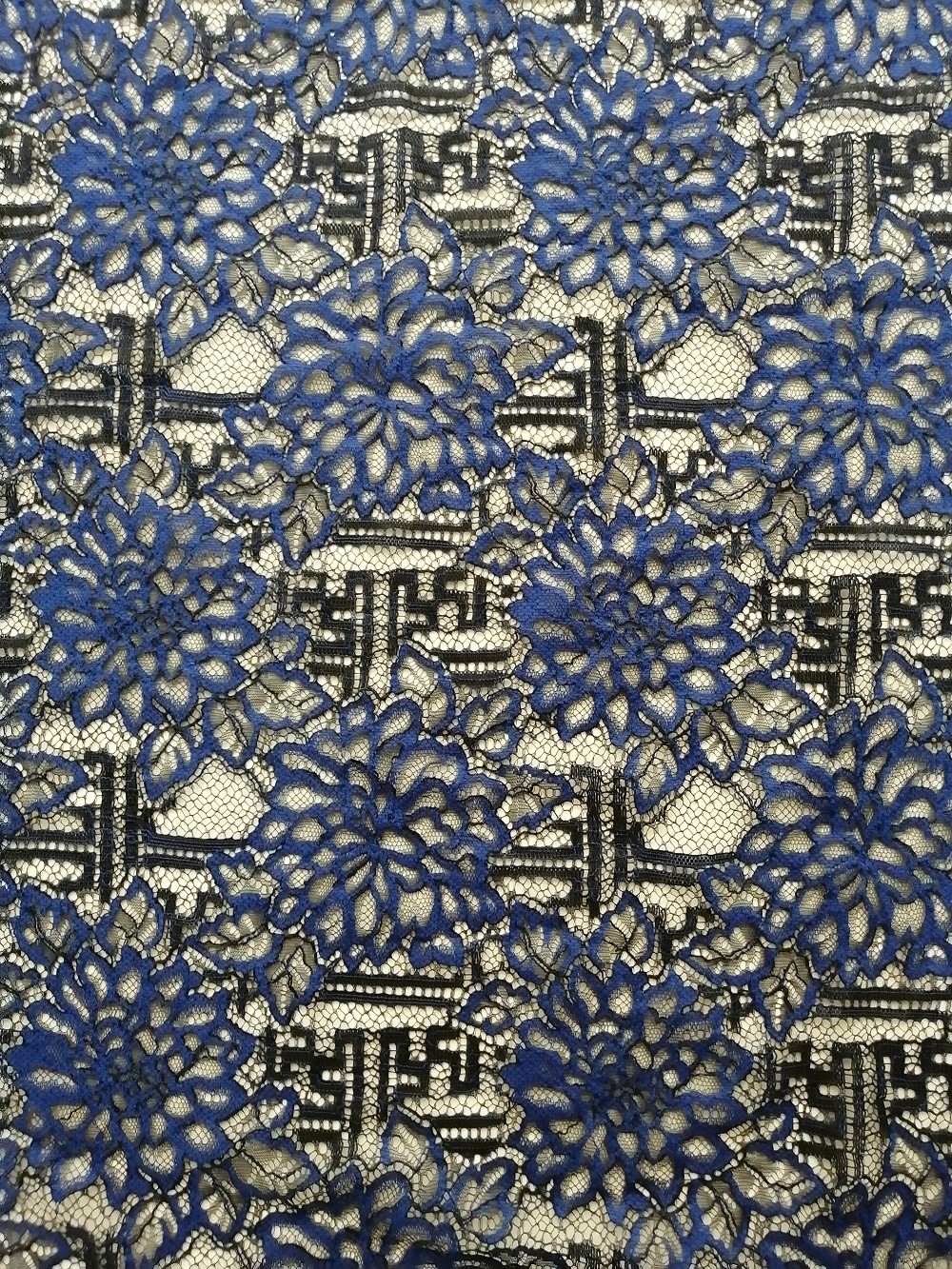 | ハイライト: | 142CMの青い束ねられたレースの生地,100ヤードはレースの生地を束ねた,142CMの3d花のレースの生地 |
