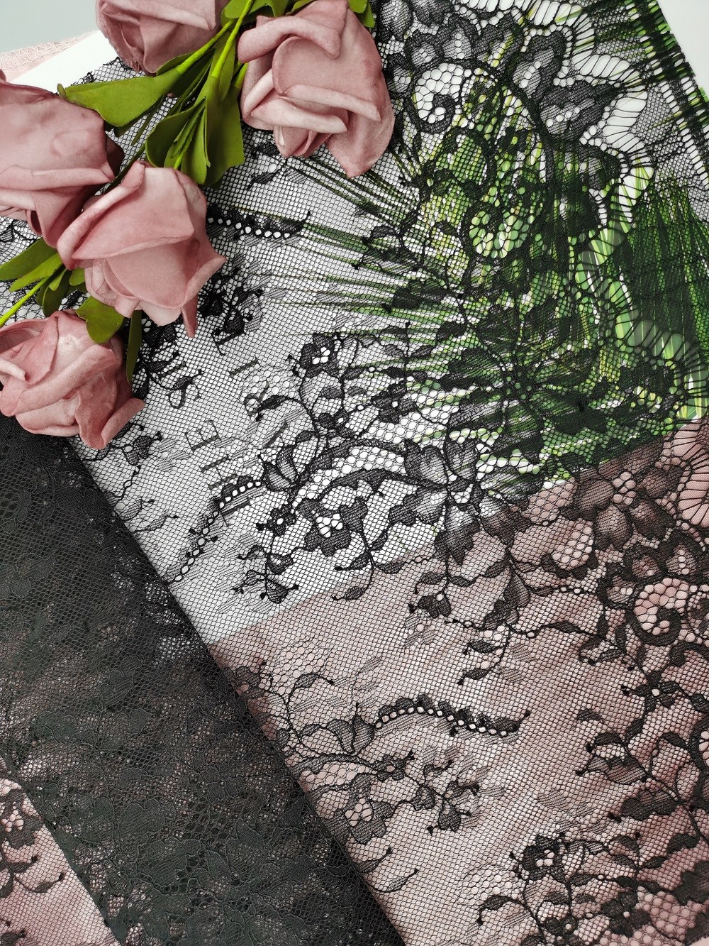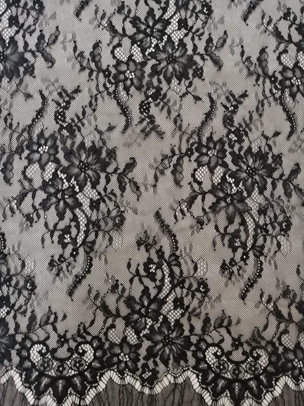 | ハイライト: | 花の黒のフランスのChantillyのレースの生地,142CM黒いChantillyのレースの生地,フランスのChantillyのカーテンのレースの生地 |