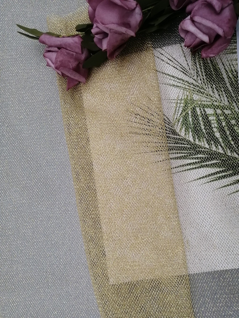 ハイライト: | 147CM金属Lurexのメッシュ生地,100yards Lurexのメッシュ生地,147CMの金の柔らかいメッシュ生地 |