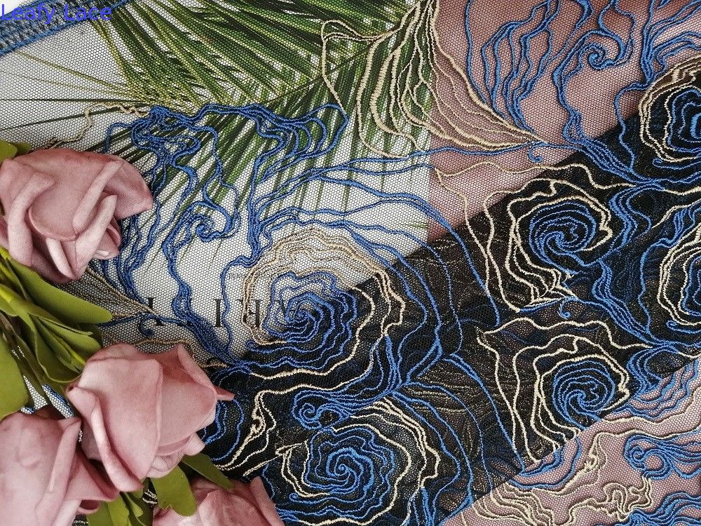 | ハイライト: | 125CMの花の刺繍されたレースの生地,100%のポリエステル花の刺繍されたレースの生地,青は花のメッシュ生地を刺繍した |