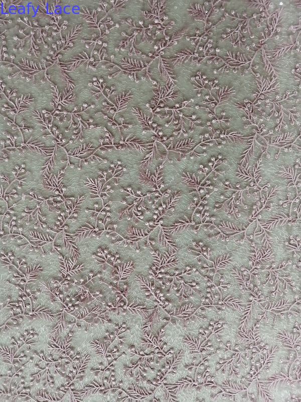 ピンクの敏感な3D花のレースのスパンコールはイブニング・ドレスの女性ののためのDress Garment Brands生地を刺繍したウェディング ドレスがOEKO-Texの標準100の条件を満たすことができる。