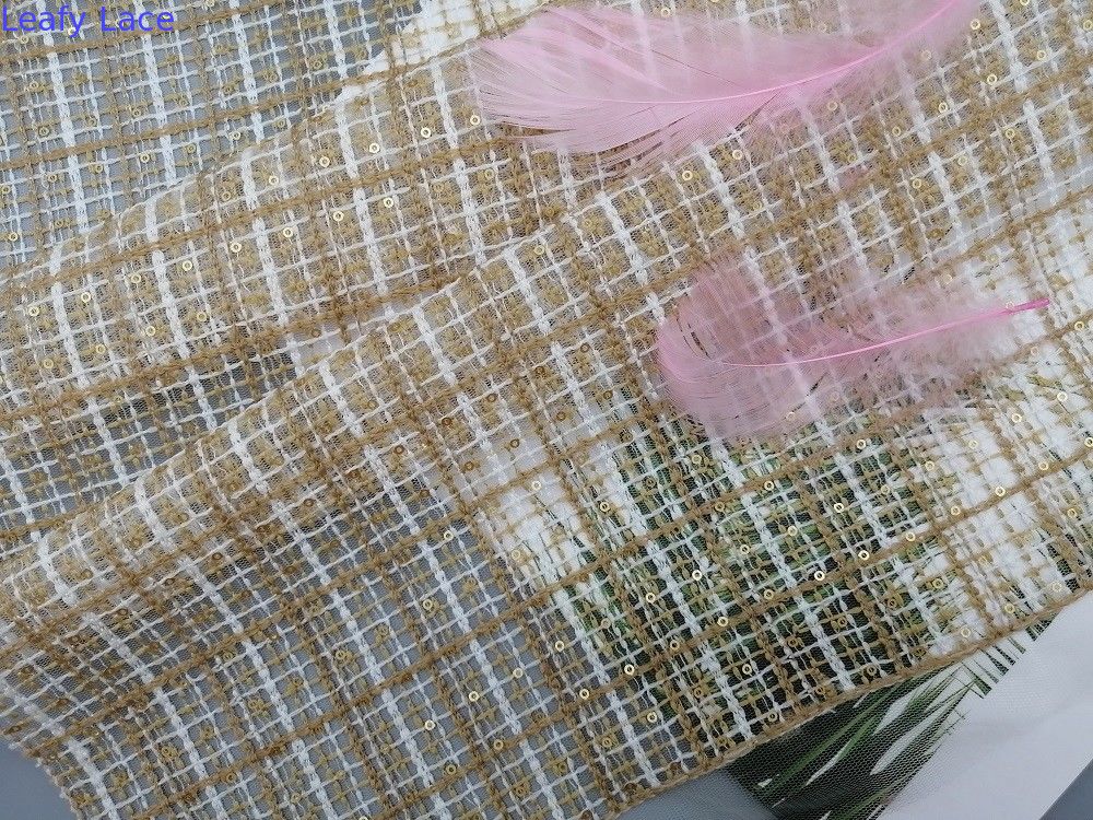 | ハイライト: | カーキ色のスパンコールの刺繍された生地,125CMの網によって束ねられるスパンコールの刺繍された生地,100yardsカーキ色の女の子の服のレースの生地 |