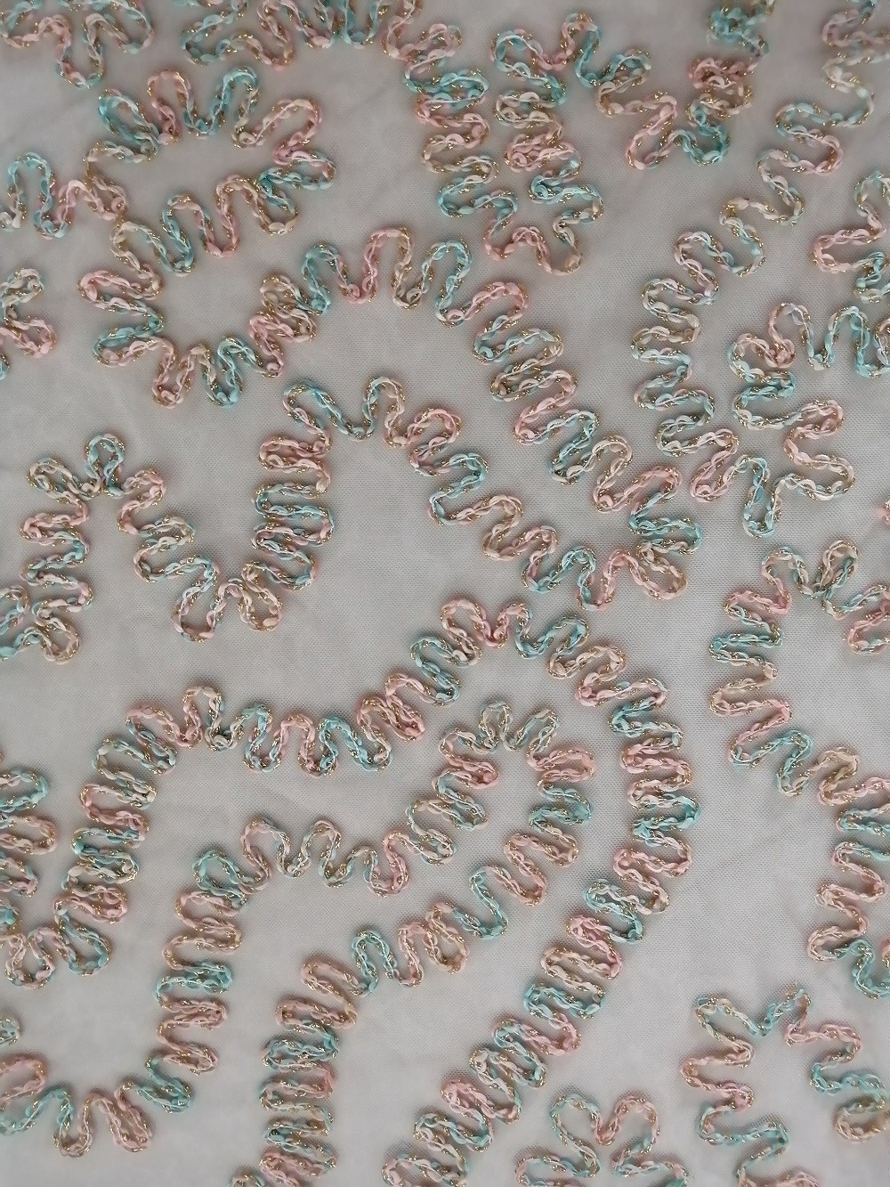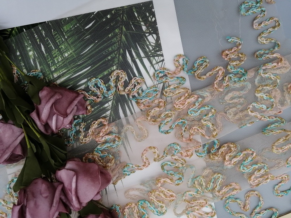 | ハイライト: | 束ねられたLurexの金属レースの生地,125CMのかぎ針編みの金属レースの生地,束ねられたLurexはレースの生地をかぎ針で編む |