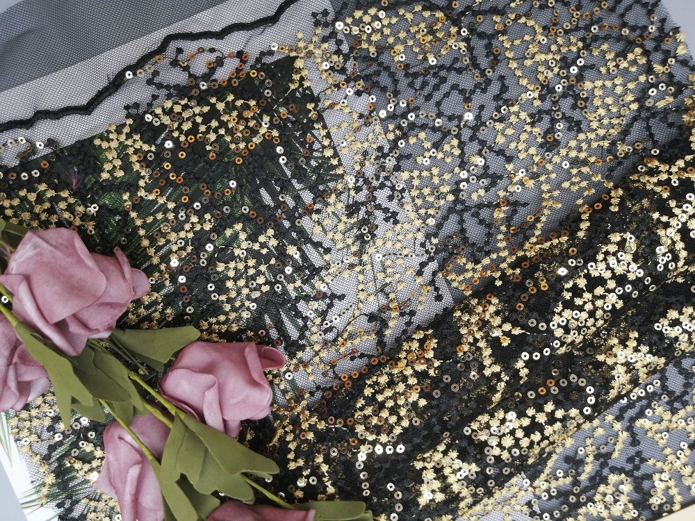 | ハイライト: | 125CM刺繍されたスパンコールのメッシュ生地,100yardsはスパンコールのメッシュ生地を刺繍した,125CMの黒い刺繍されたメッシュ生地 |