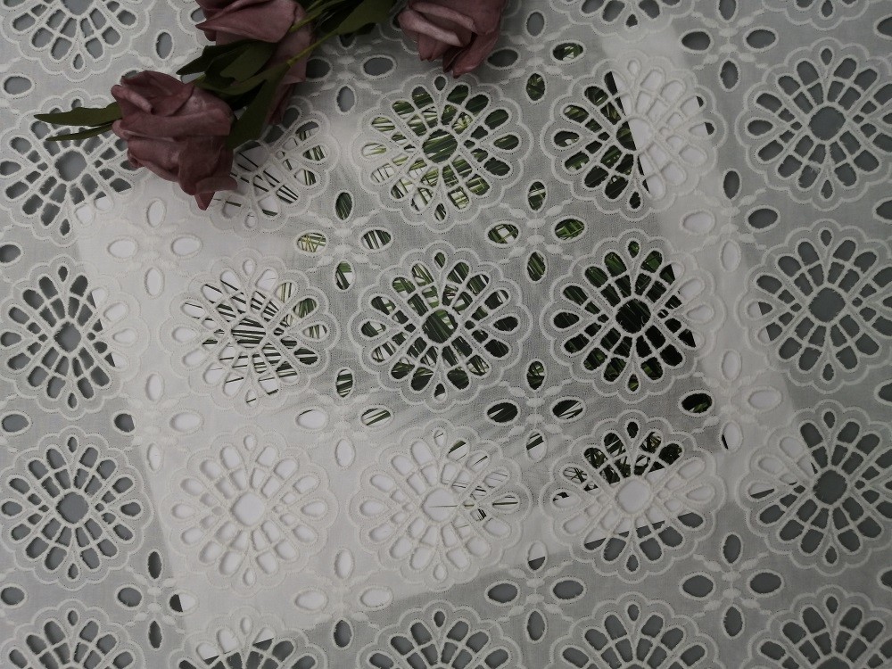 100%の綿レーザーはカット・ワークを刺繍した服によってが家の織物のためであるイブニング・ドレスの女性女の子、カーテン、寝具の記事、服装、帽子、ウェディング ドレス、ブラウス、Garmentsのテーブルクロス、女の子の服女性ののためのDress Female Dressアイレット生地を、作る女性の靴、ズボン、ズボン、不足分、ジャケット、等を切った。