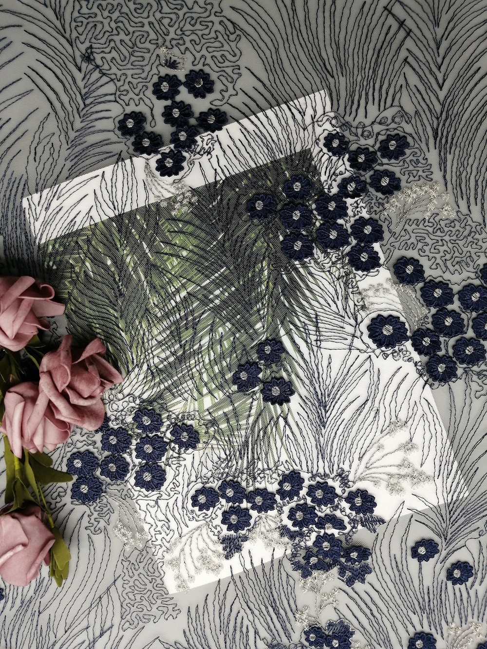 | ハイライト: | 125cmの刺繍のかぎ針編みのレースの生地,125cmの3D花のかぎ針編みのレースの生地,生地60ヤードの3D海軍レースの |