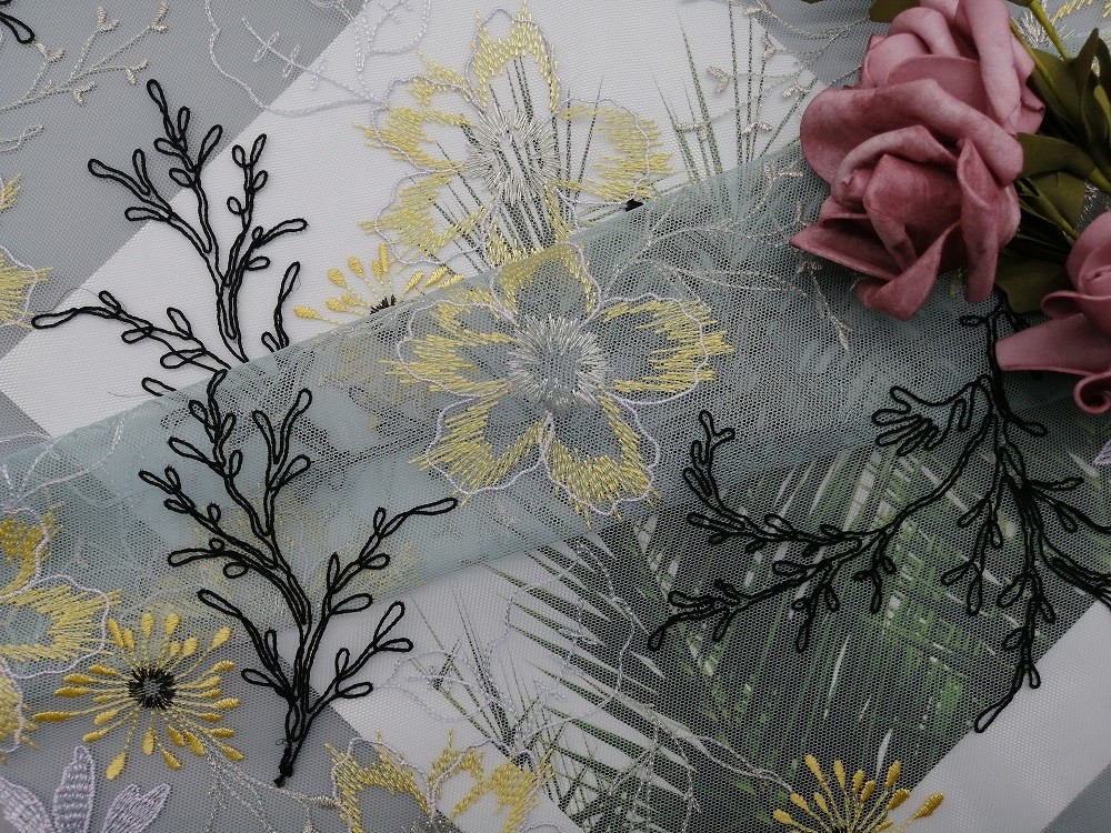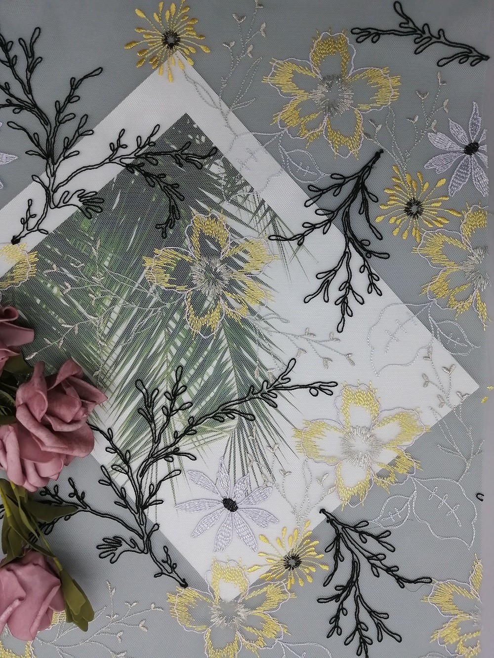 | ハイライト: | テュルの網によって束ねられるレースの生地,125cmの網によって束ねられるレースの生地,125cmテュルの花のレースの生地 |