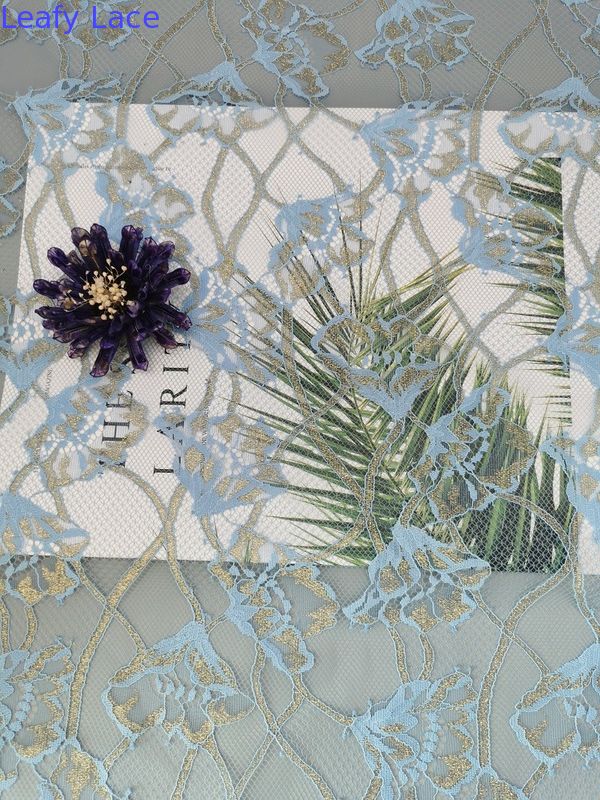 | ハイライト: | 142CMの金属花の刺繍のレースの生地,アゾの自由な金属花の生地,142CMの金属花の生地 |