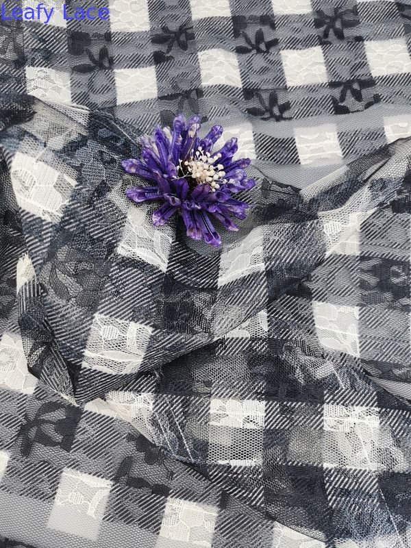 格子縞パターン レースはレースの生地を点検した刺繍のしまのあるレースの指定を印刷した: