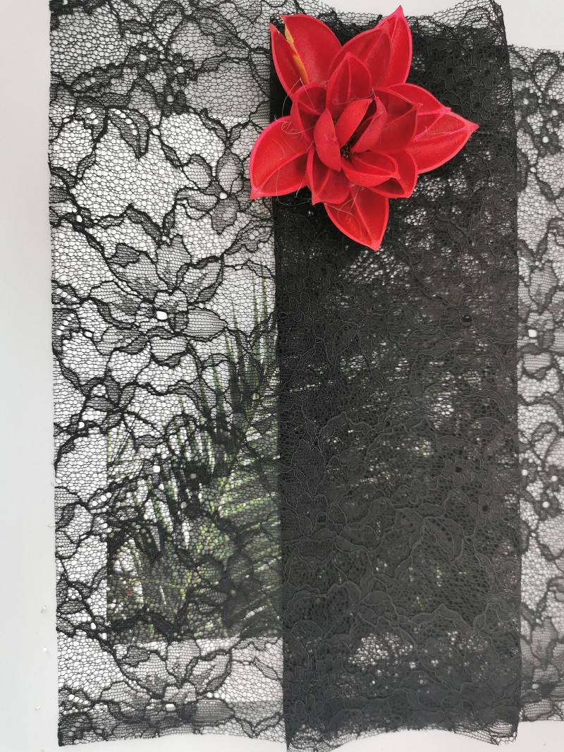 | 様式: | 100%nylon黒のフランスのchantillyのレース | 特徴: | Raschelのレース |
