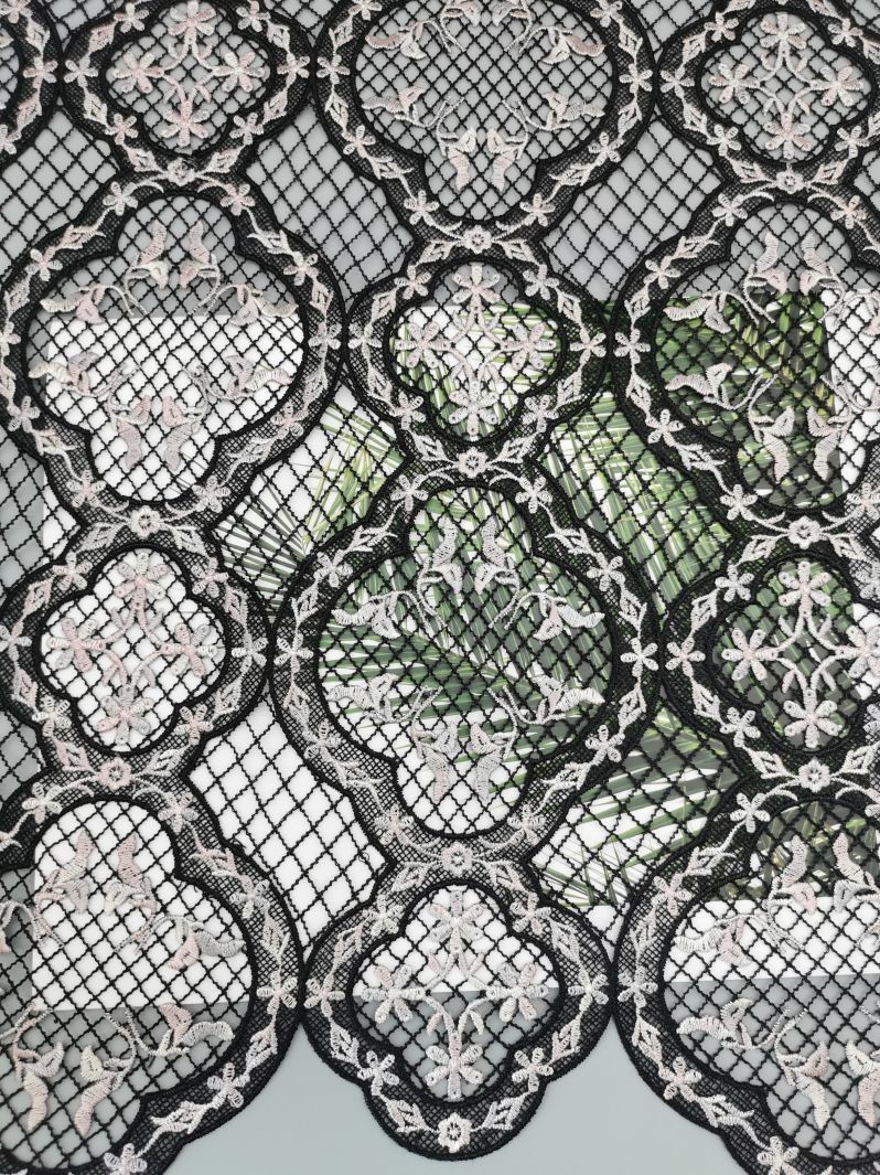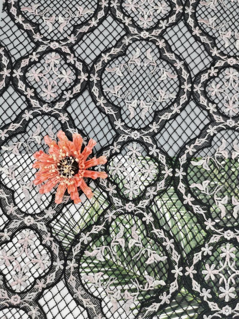 | ハイライト: | 125CMは花の化学レースの生地を着色した,125CMの花の化学レースの生地,水溶性の着色された刺繍の生地 |