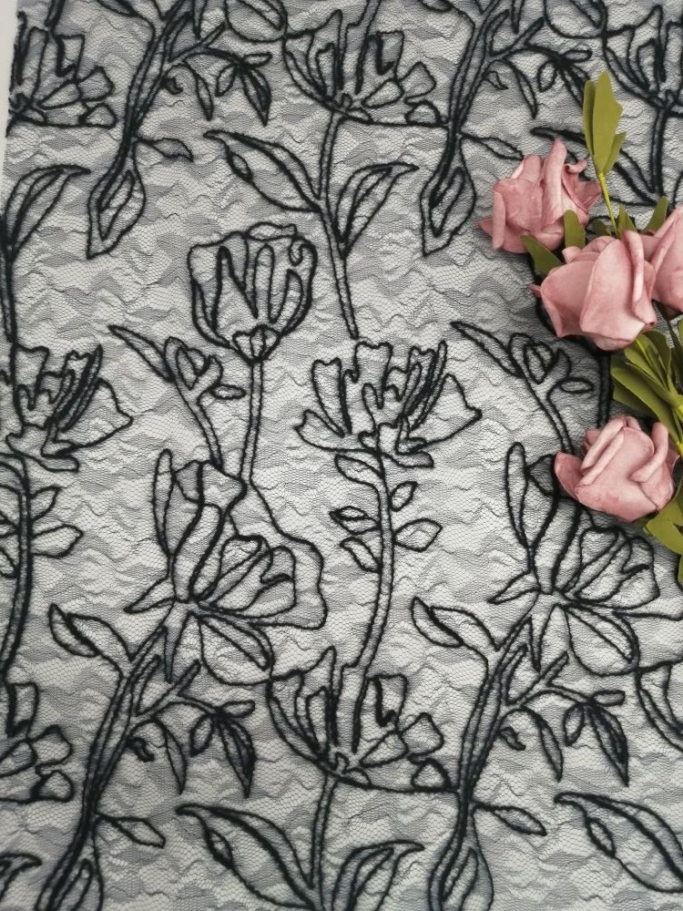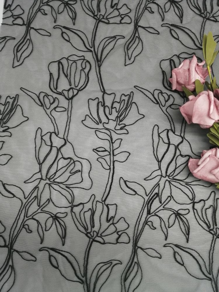 | 様式: | 束ねられた黒い刺繍 | 特徴: | 花のテュルの網 |