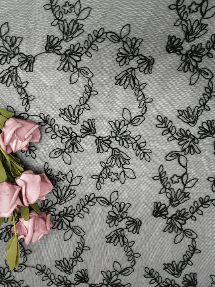 | 様式: | 束ねられた黒い刺繍 | 特徴: | 花のテュルの網 |