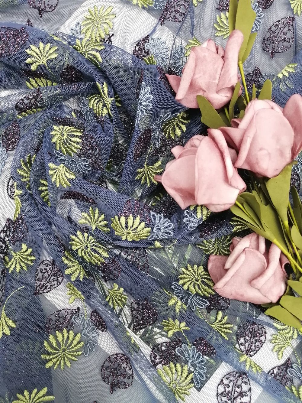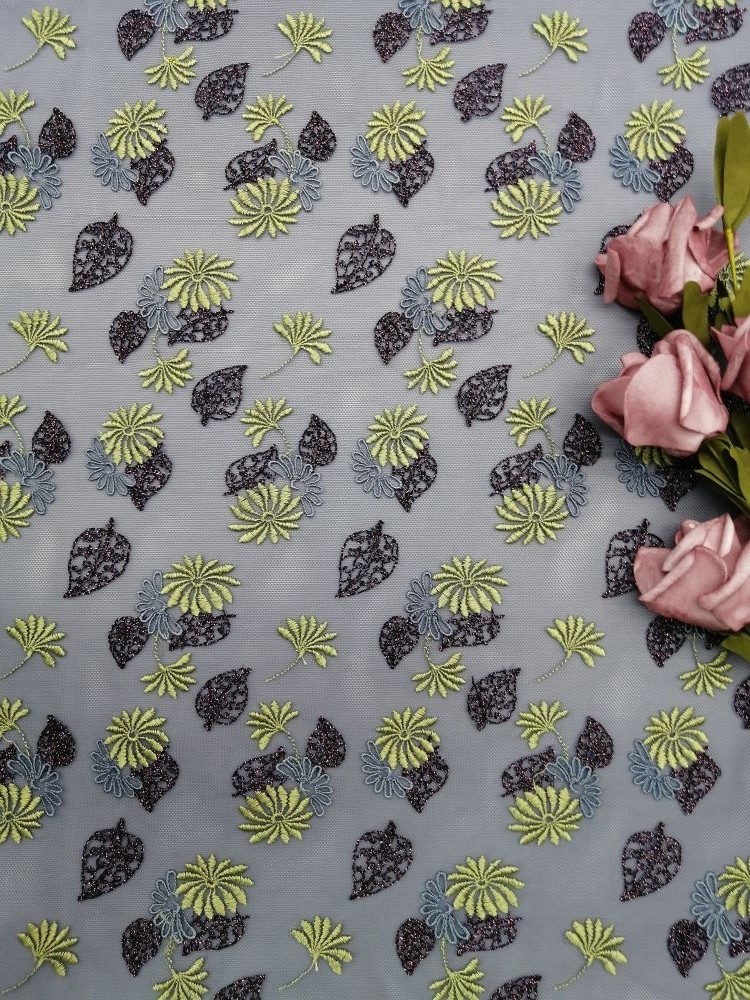 | 様式: | 着色されたボイルの刺繍の生地 | 特徴: | 金属テュル |