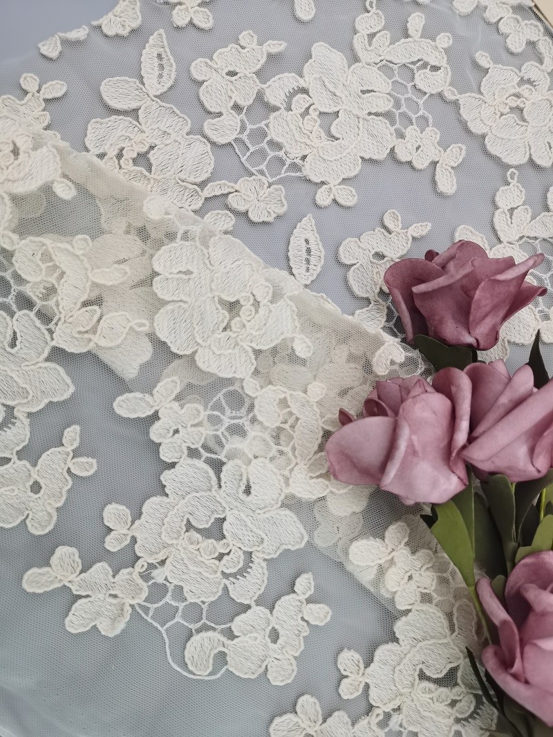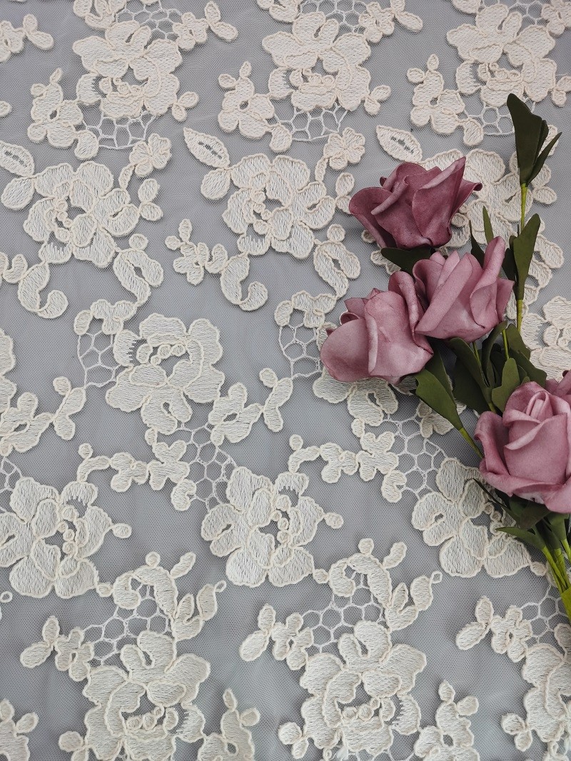 | 生産の名前: | 花の束ねられたレースの生地 | 特徴: | コードのレース材料 |