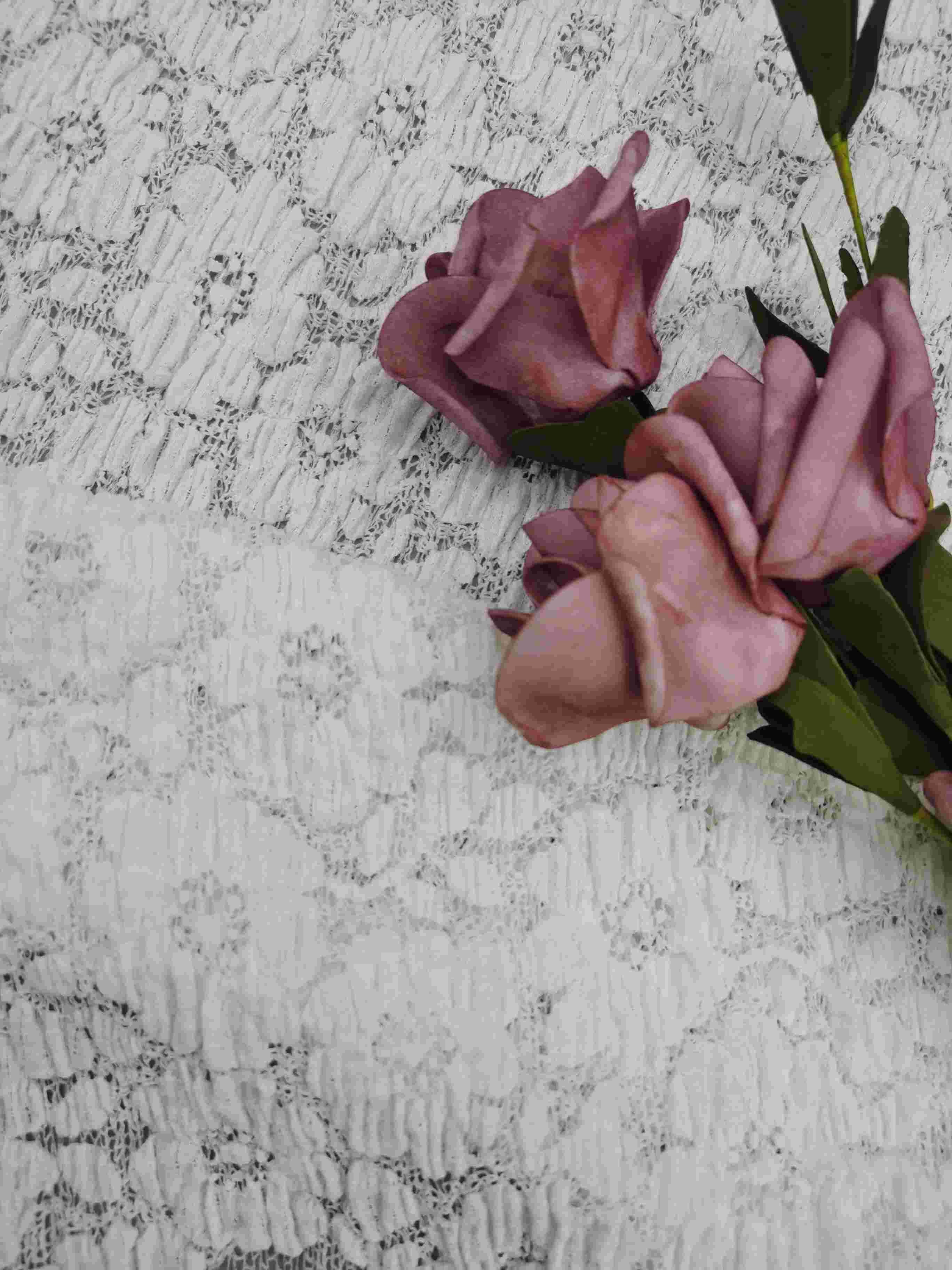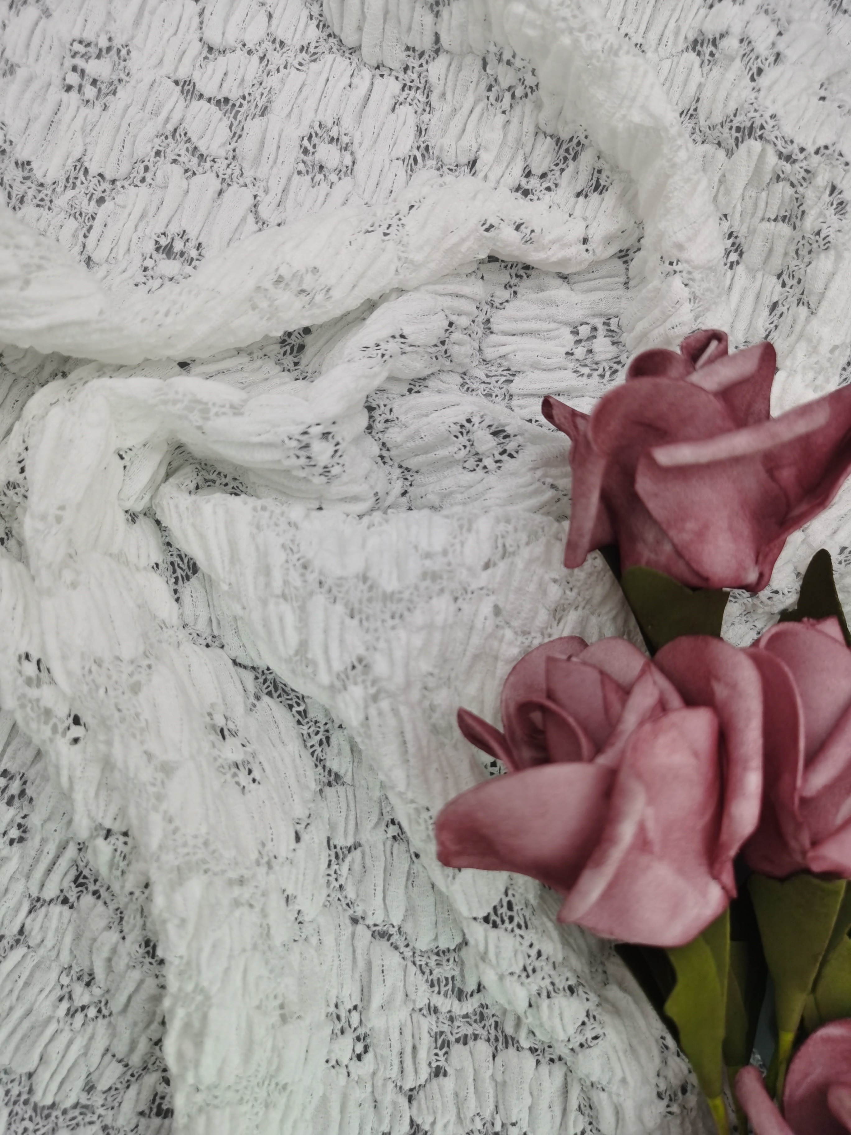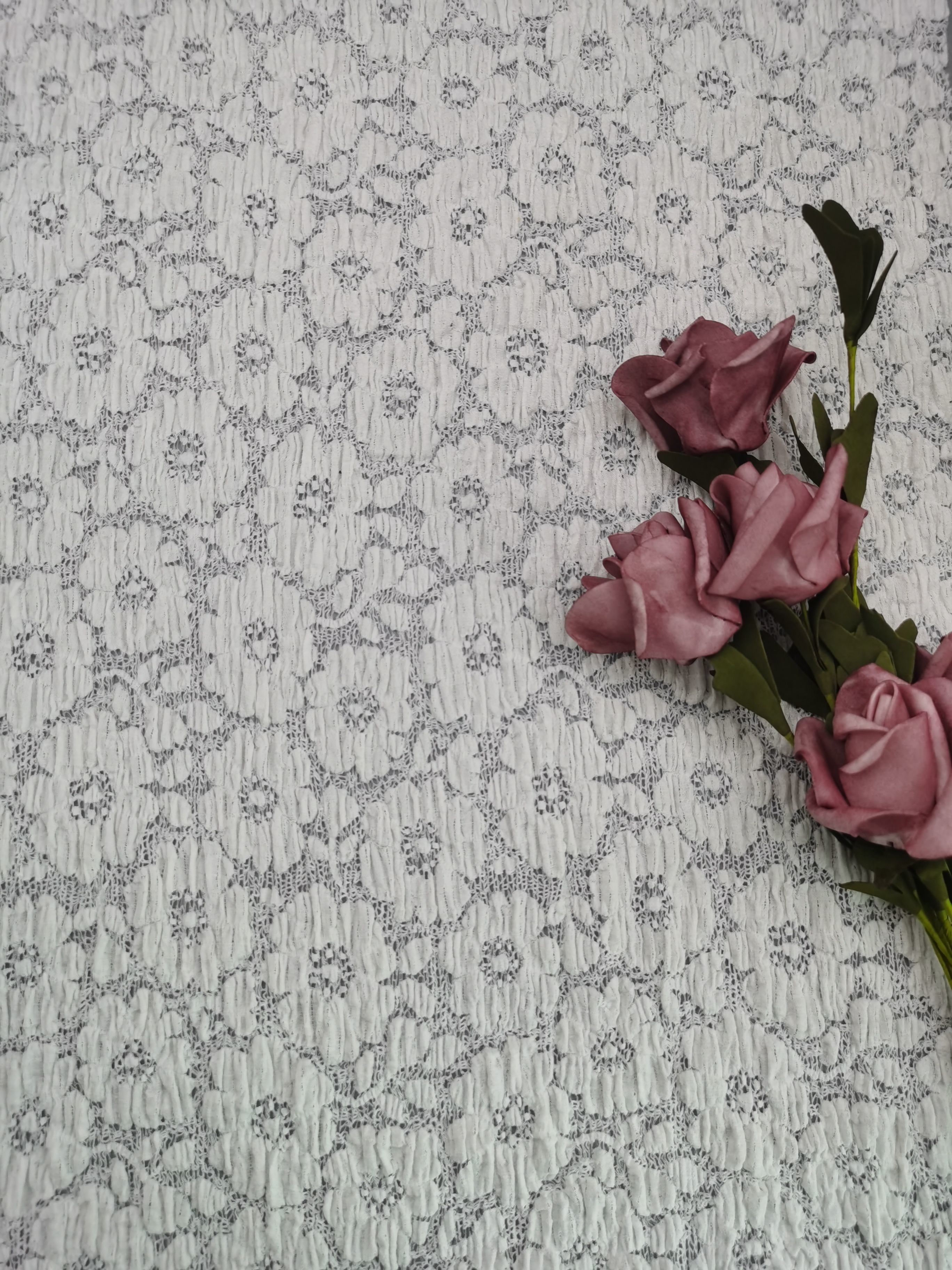 | ハイライト: | スパンデックスの花のレースの生地,49インチの白い花のレースの生地 |