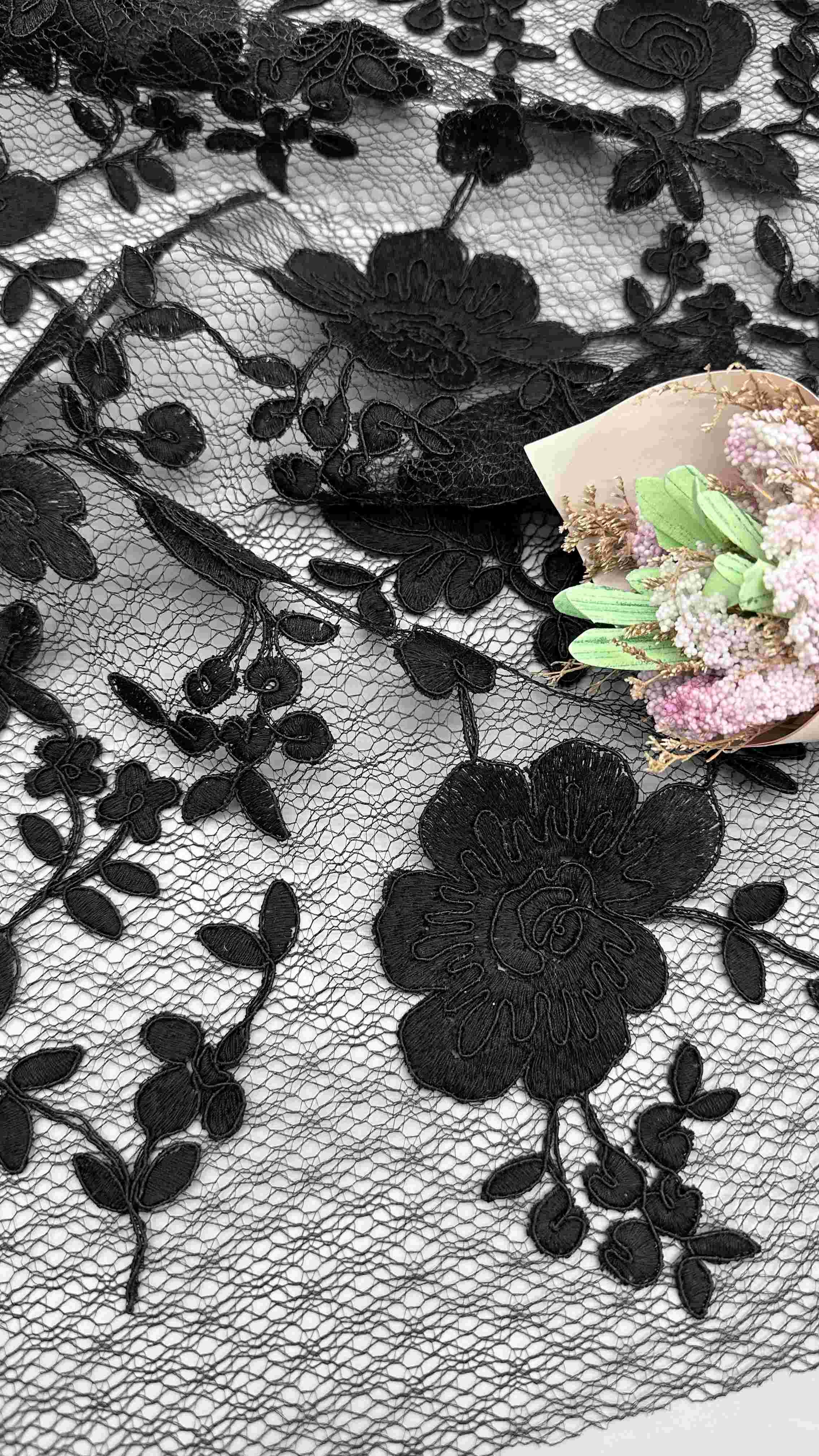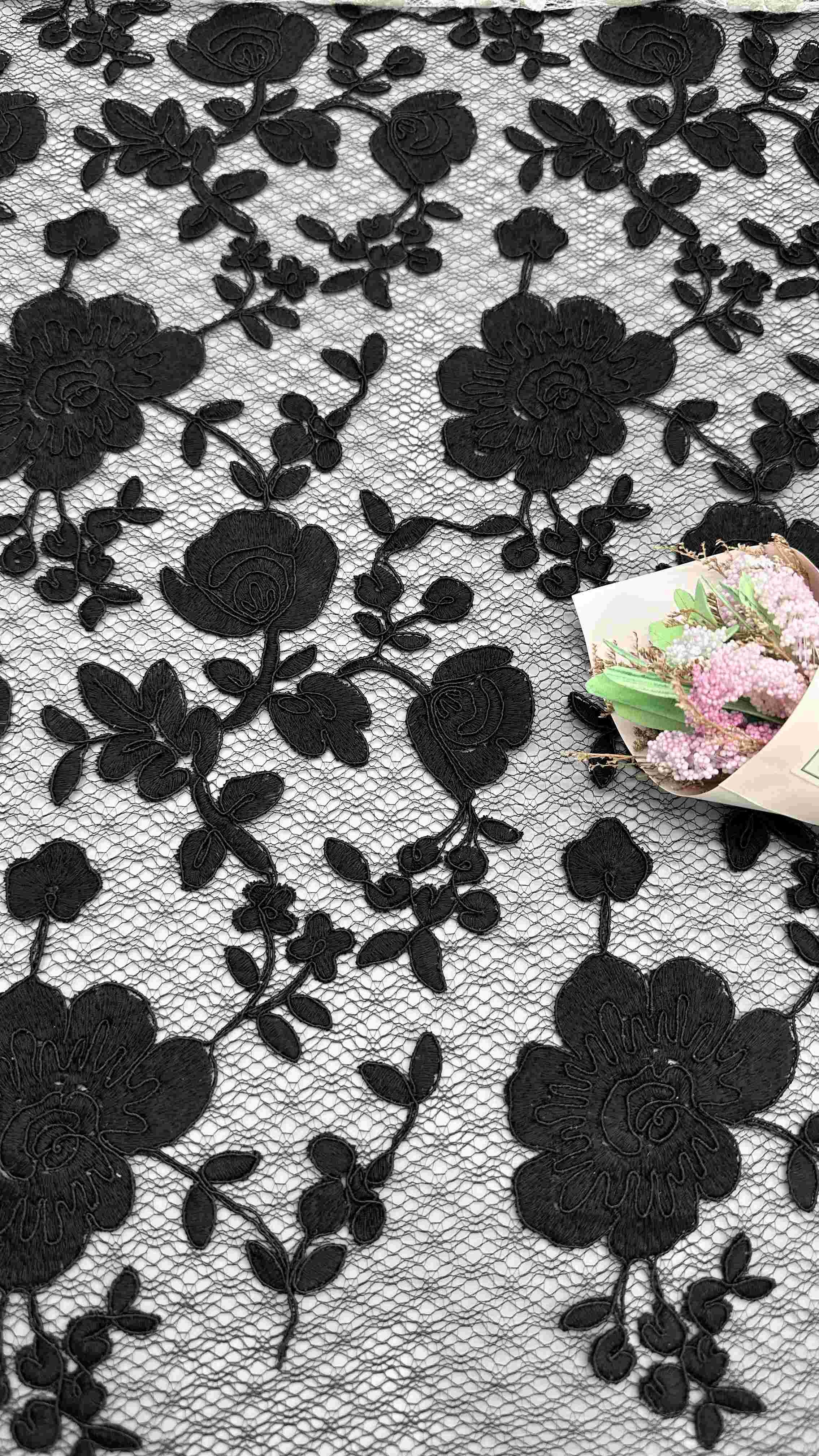 | ハイライト: | 花の模様 刺?? 網状 蕾の織物,黒く刺さった網状の蕾の織物,129cm 刺さった網状蕾の織物 |