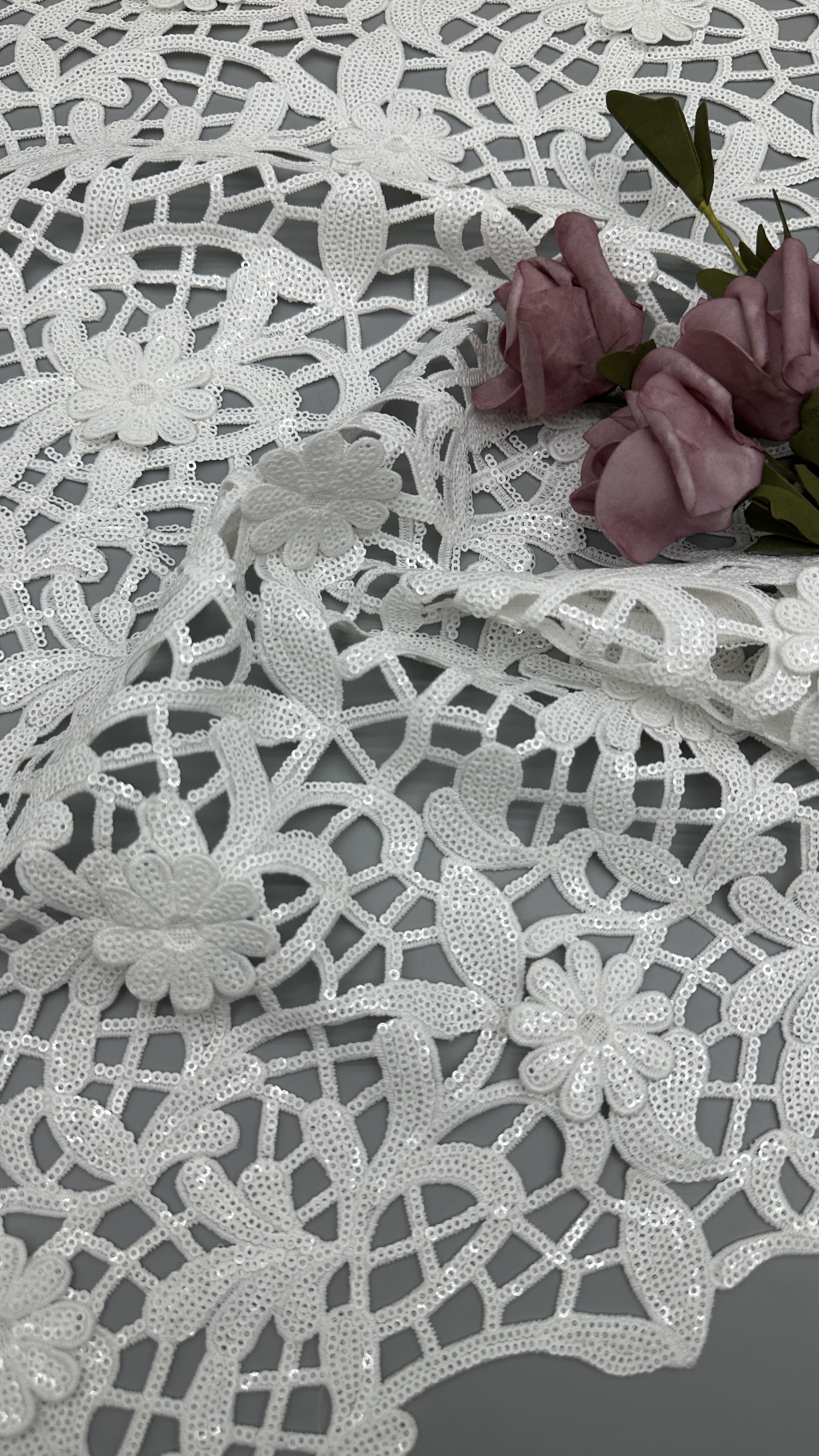 | ハイライト: | ハンケット・ステンスの織物,白色セキーン 刺身の蕾の布,豪華 オーシャン 蕾の布 |