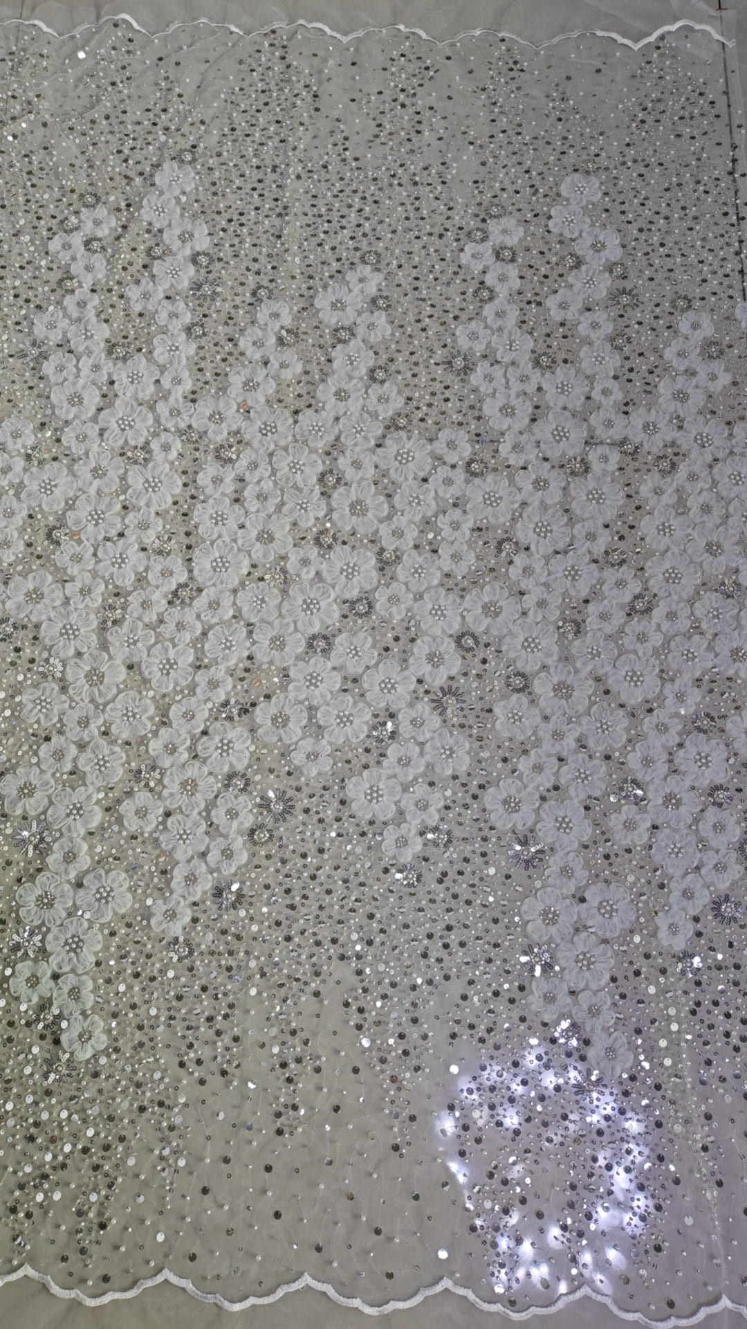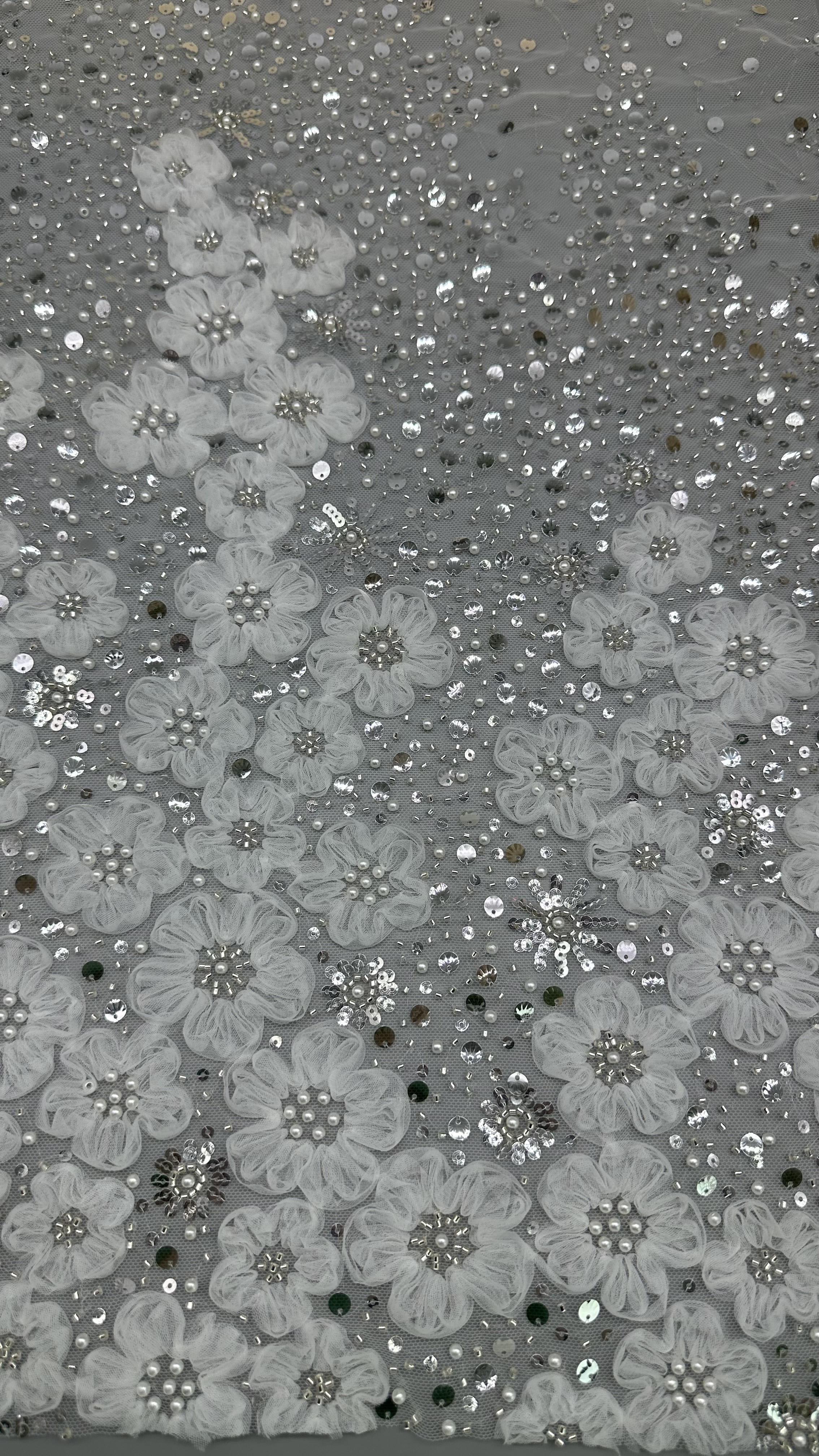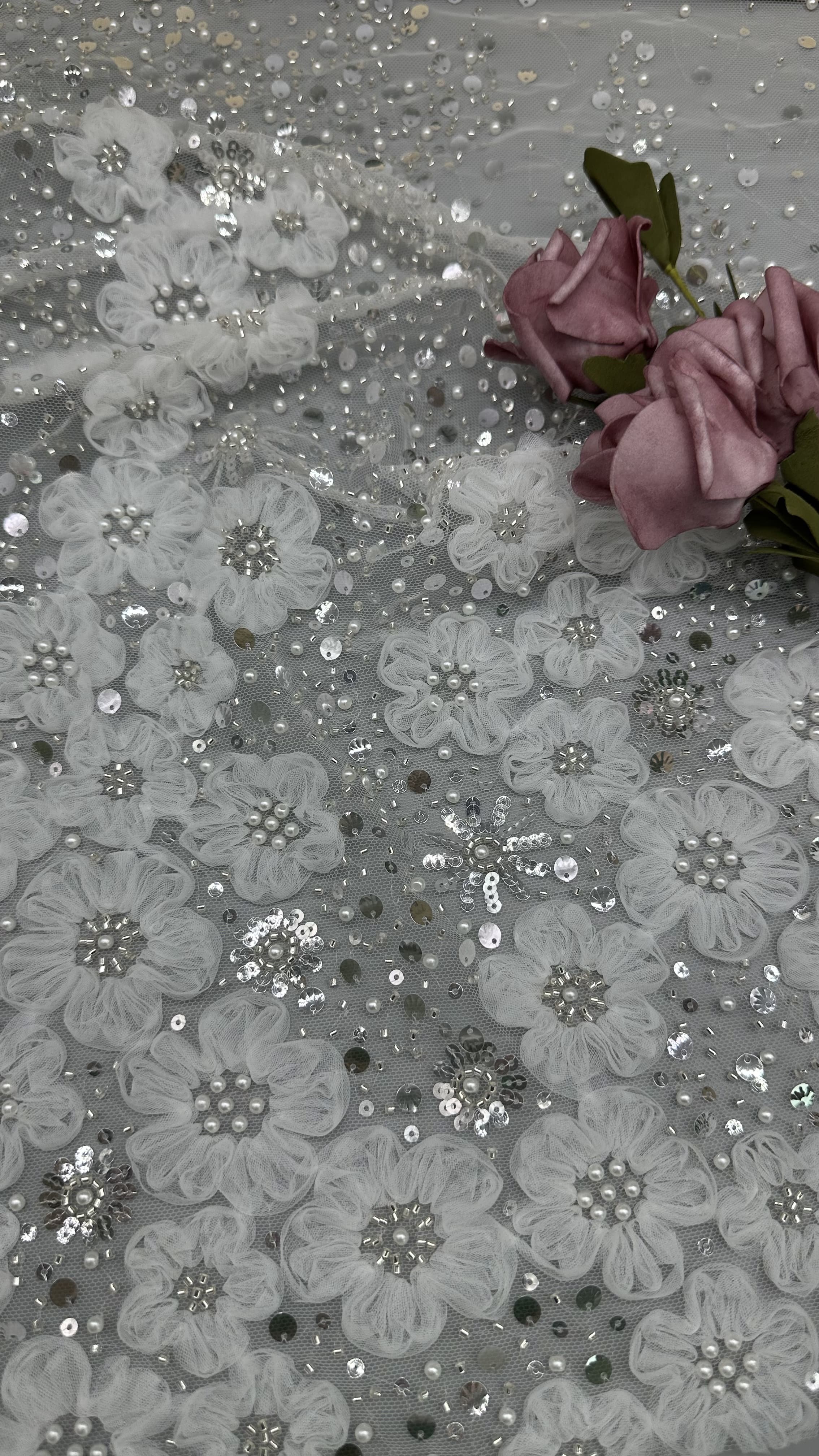 | ハイライト: | シキーン・ランス・ビーズ・エブローダー・ファブリック,耐久性のある刺身の蕾織物,白い珠の刺身布 |