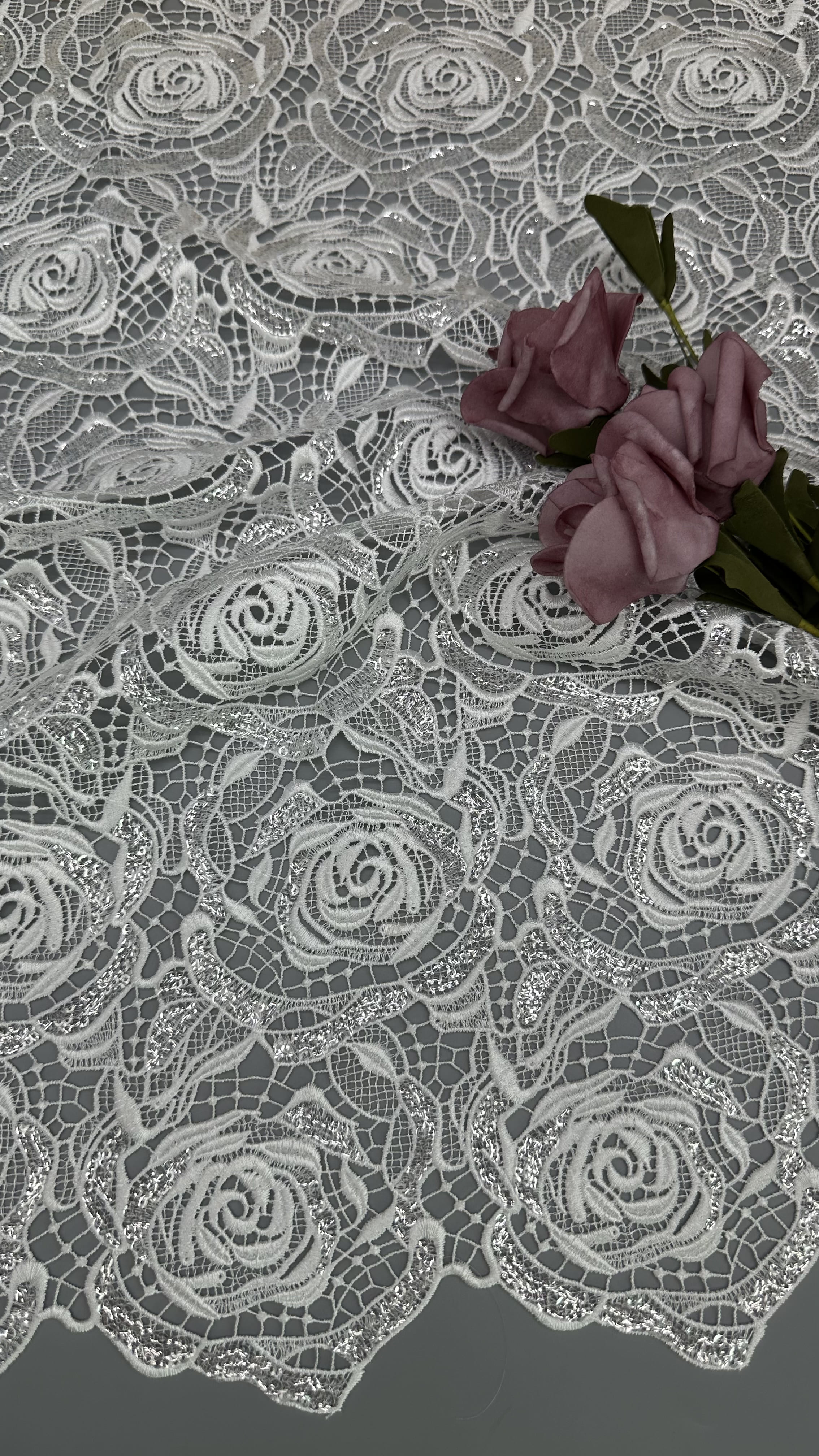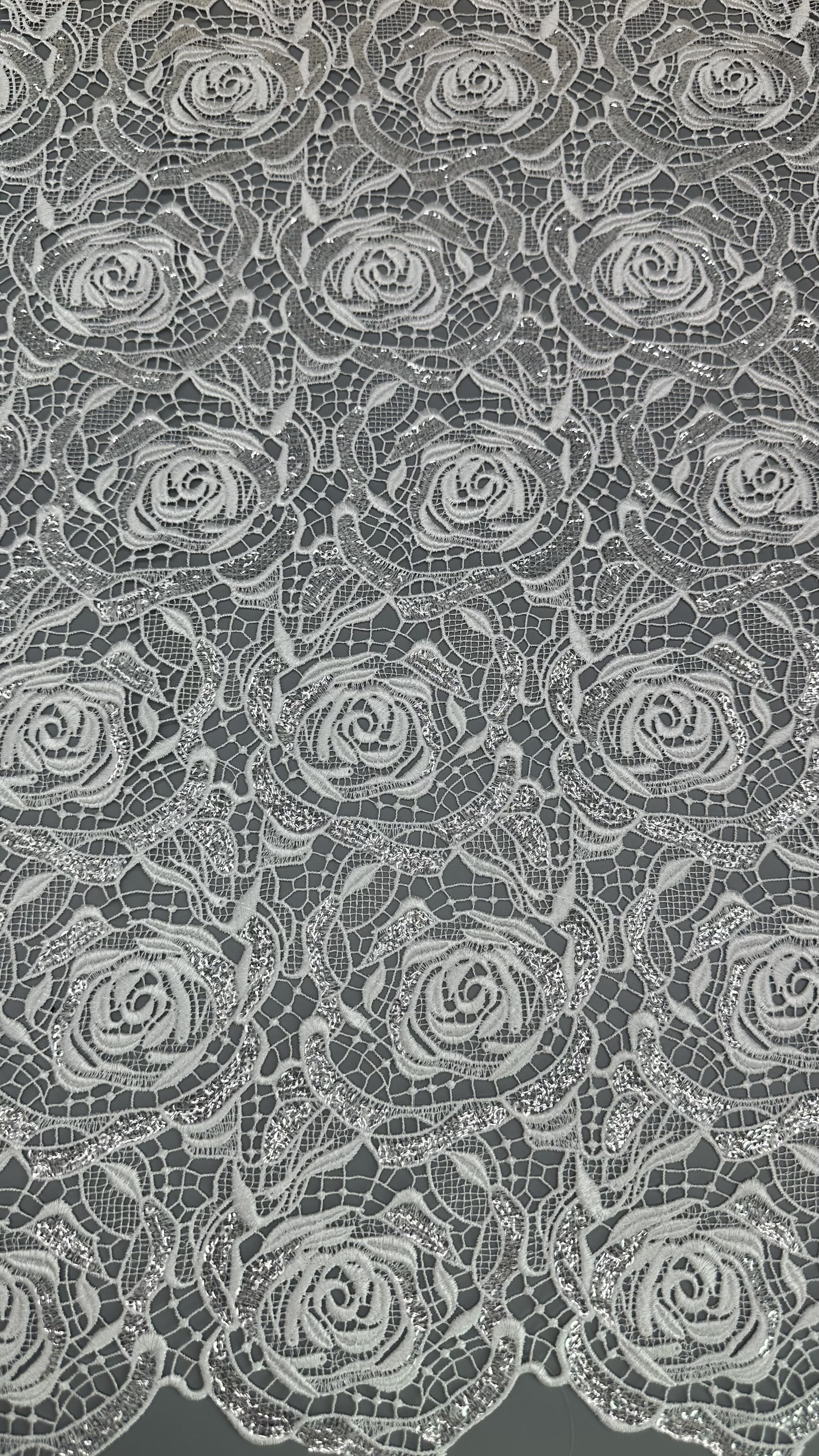 | ハイライト: | メタリックシャンティイ生地,ガウン刺繍レース生地,メタリック スパンコール刺繍レース生地 |