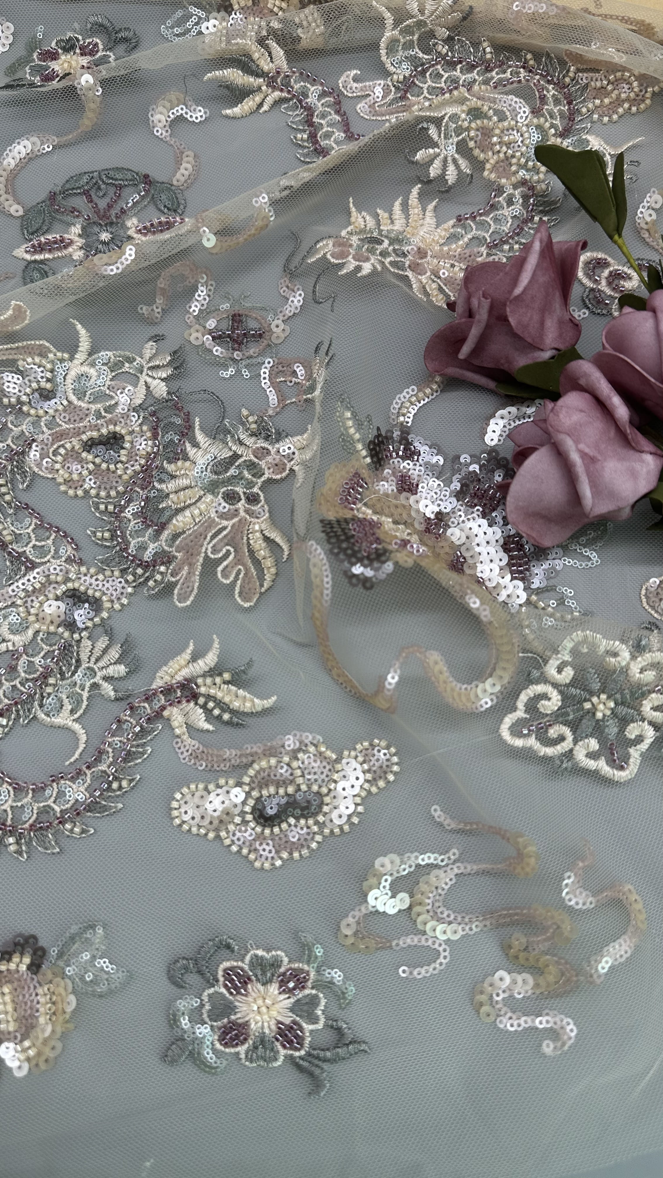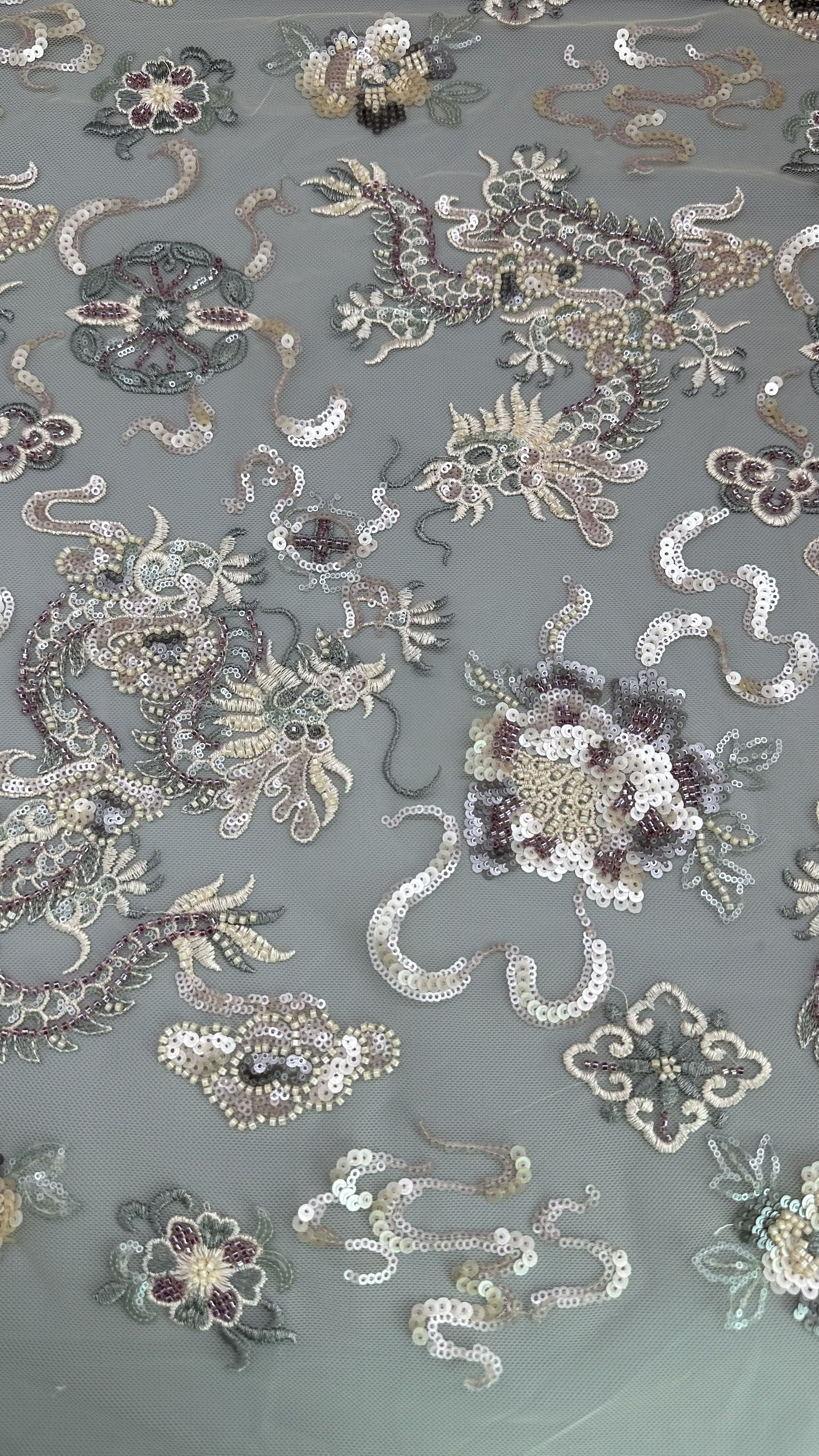 ハイライト: | メッシュグラウンド刺繍メッシュレース生地,スパンコール刺繍メッシュレース生地 |