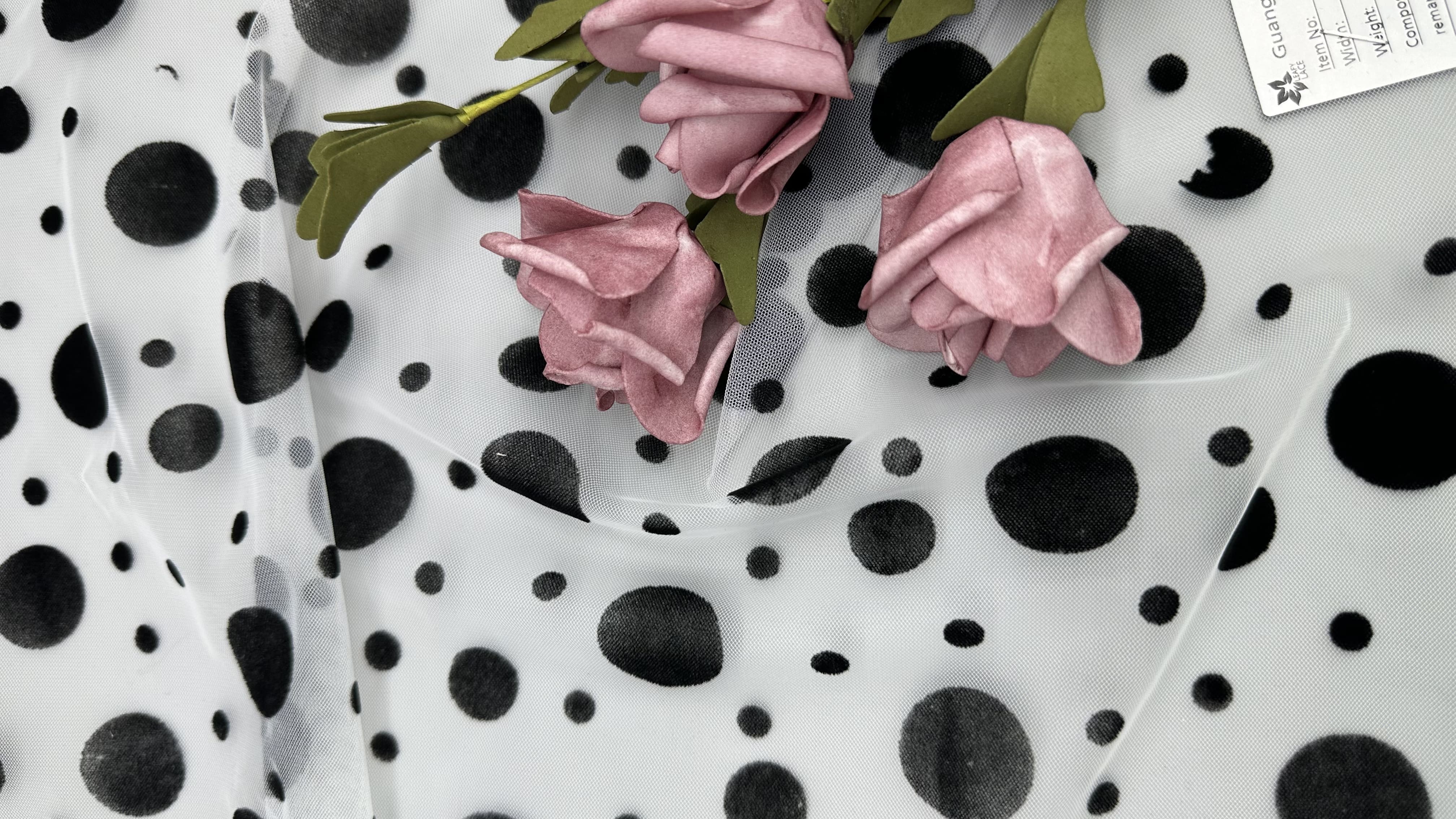 | ハイライト: | 通気性プリントレース生地,ドット柄メッシュグラウンド生地,ガウン用プリントレース生地 |