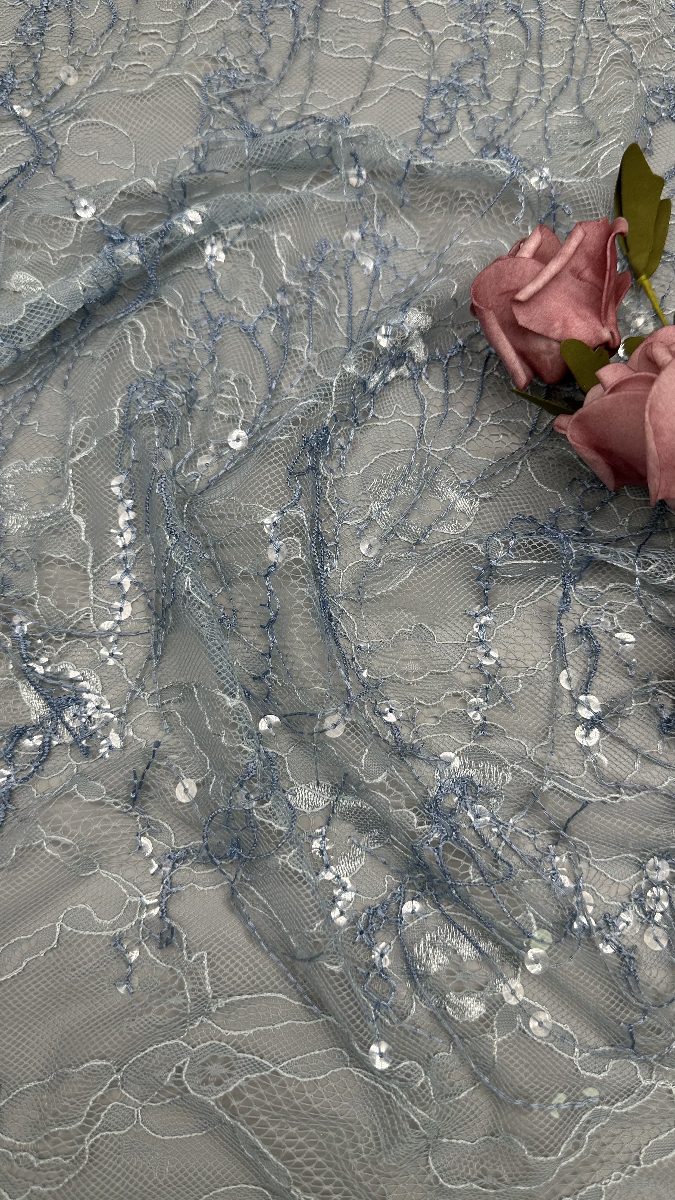 ハイライト: | ブライダルウェア用スパンコールレース生地,フレンチスタイルスパンコールレース生地 |