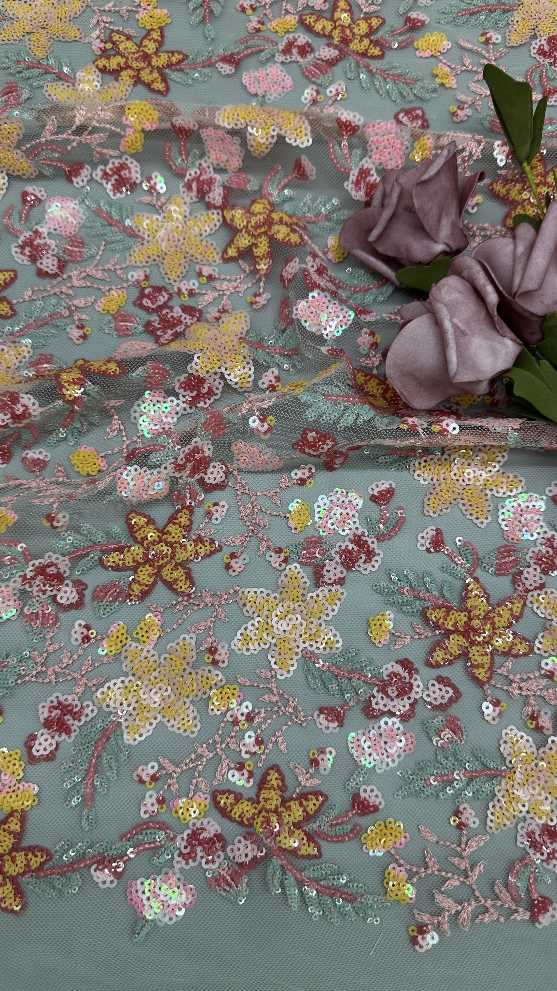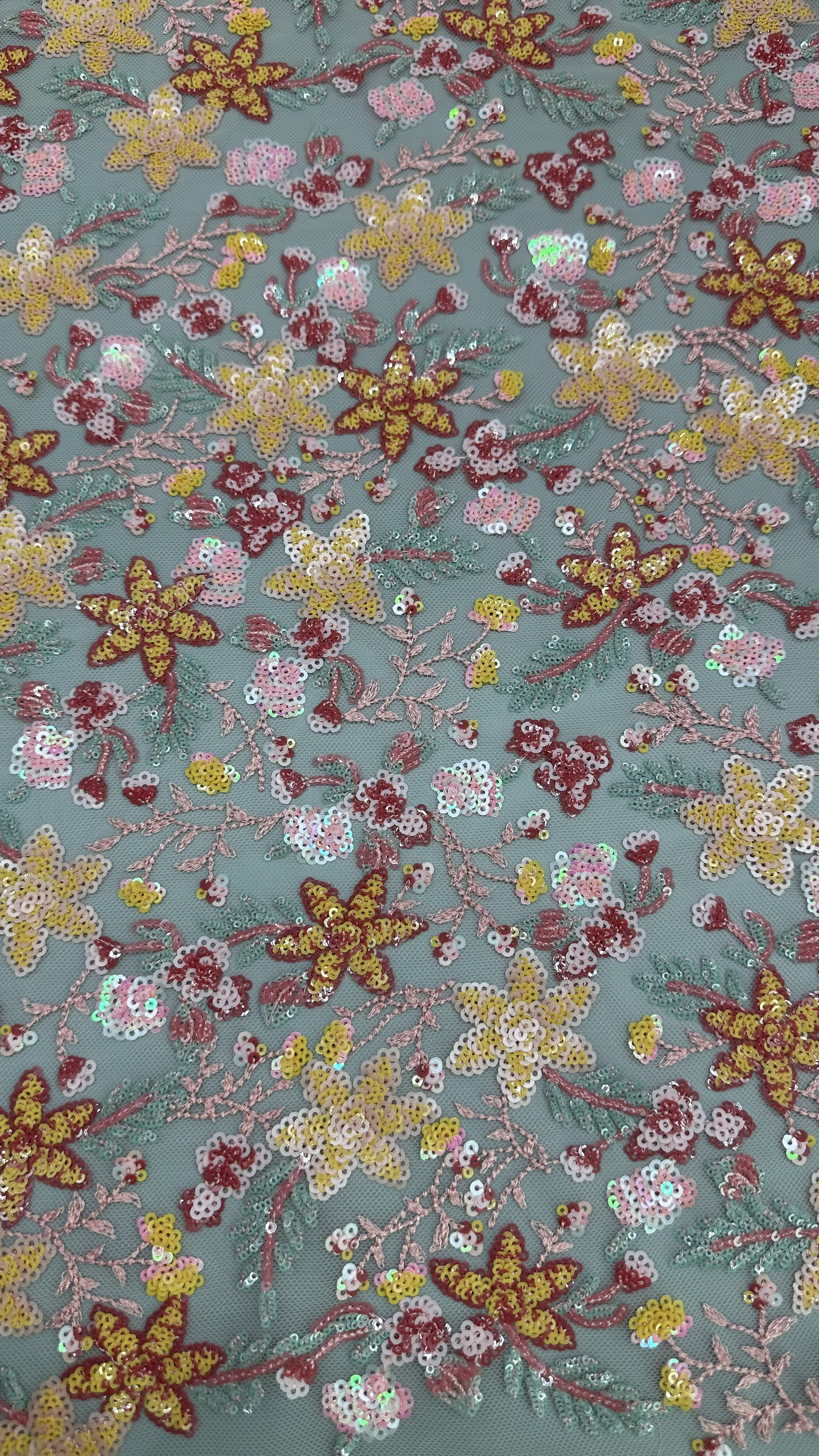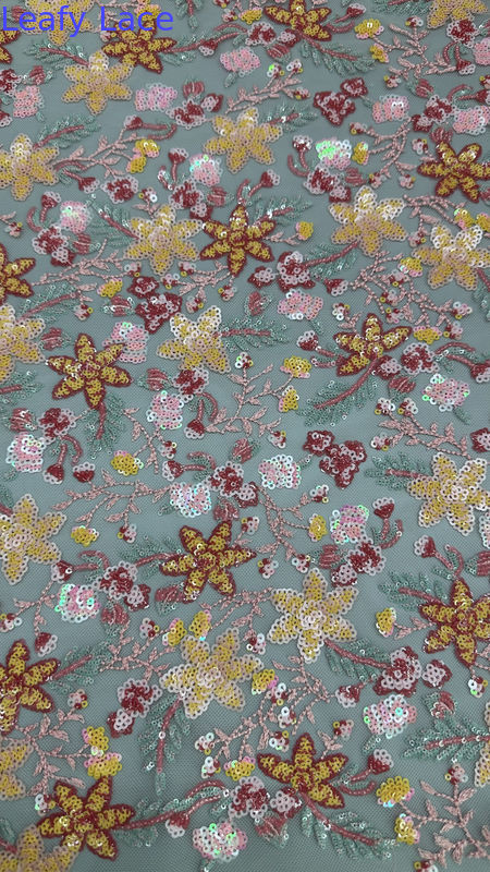 ハイライト: | 3D フラワー・ランス・ファブリック,色とりどりの シーキン 刺身 織物,ポリエステル レースの生地 |