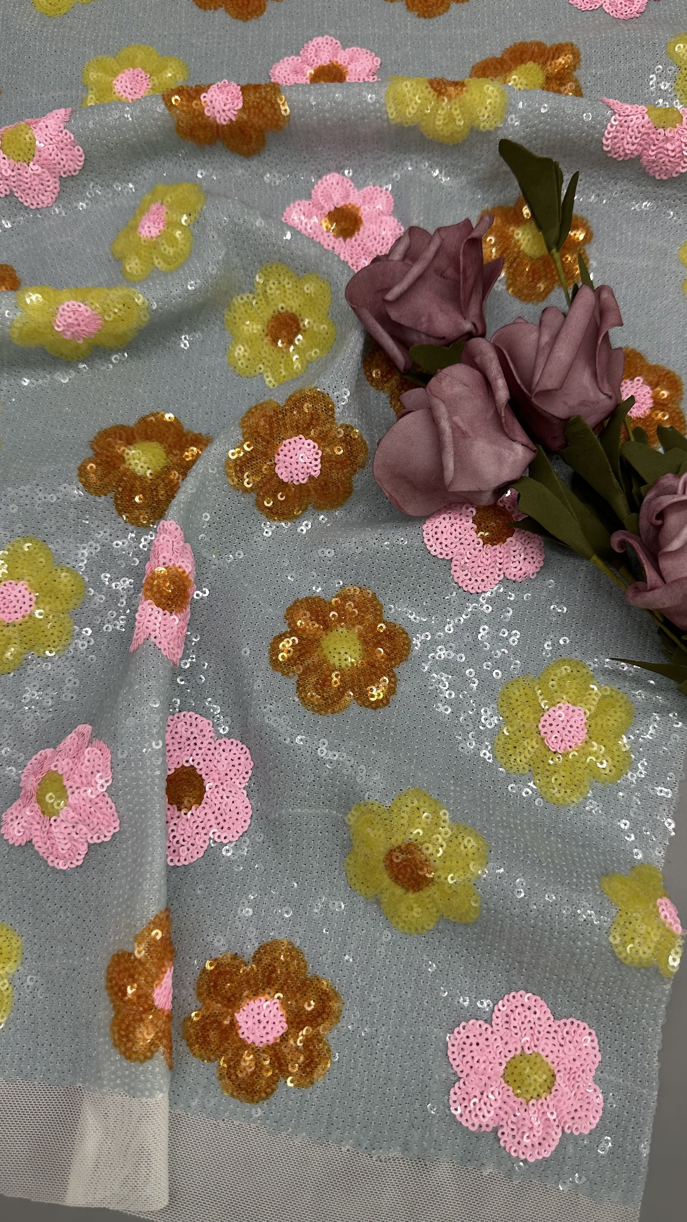 ハイライト: | 衣装 3D フローラル 蕾の織物,3D シーキン フローラル 蕾の織物,3D フローラル 蕾子 シーキン 高級 織物 |