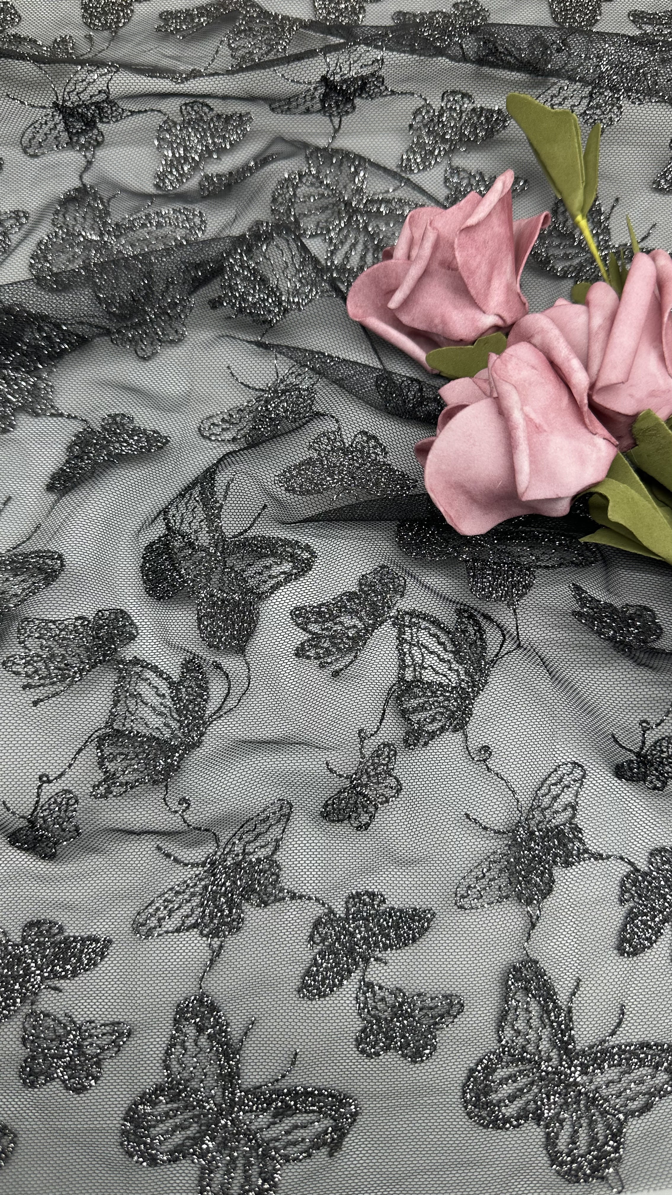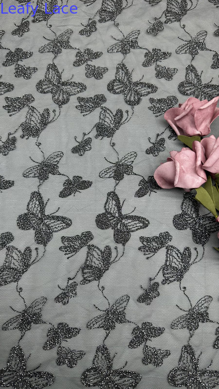 ハイライト: | 黒いシャンティリー・ランテスの布,豪華な婚礼蕾の素材,ロマンチックな化学の蕾の網 |