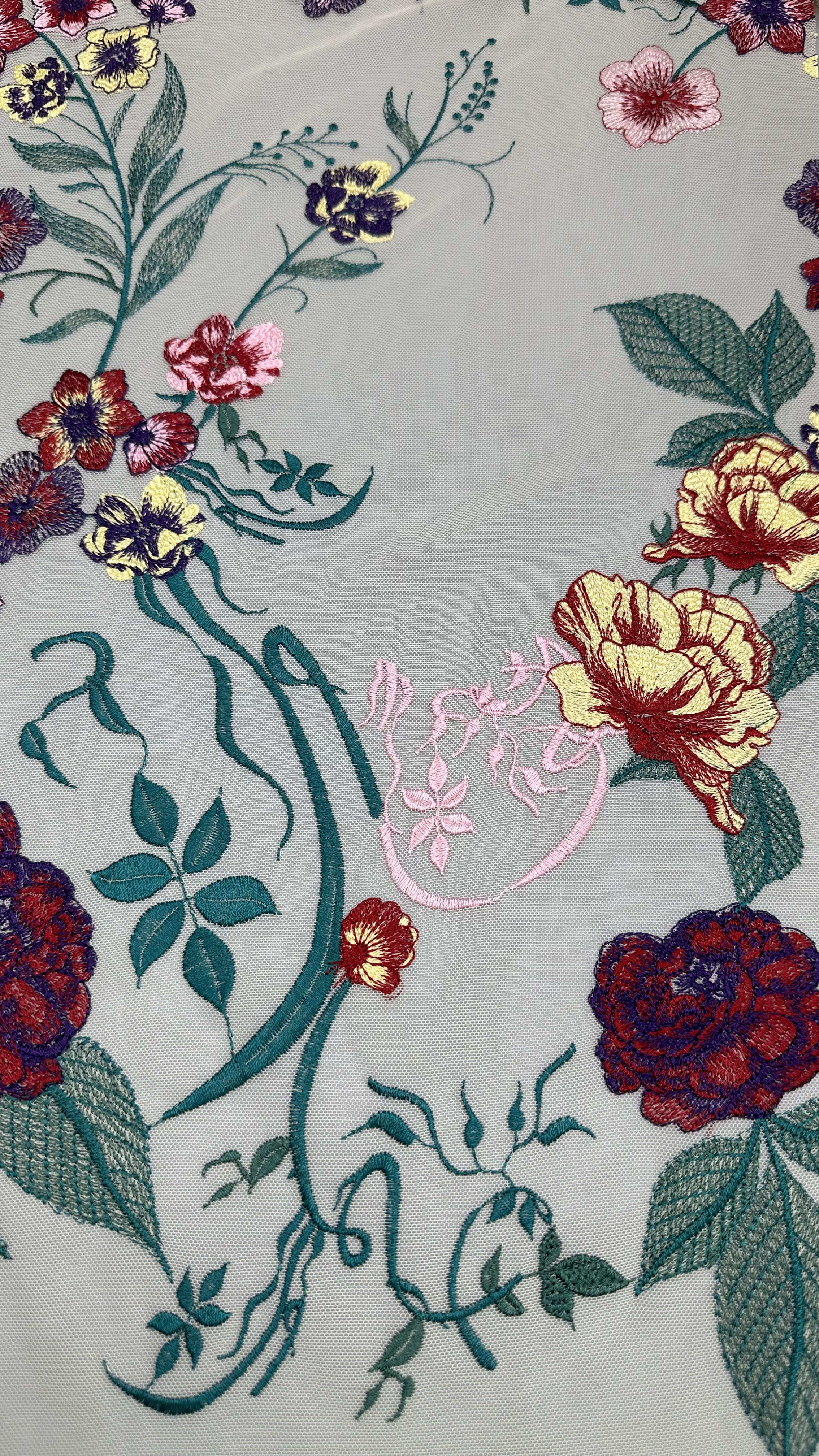 | ハイライト: | ヌードメッシュ刺繍レース生地,繊細な刺繍レース生地,春のガラガウン用刺繍レース |