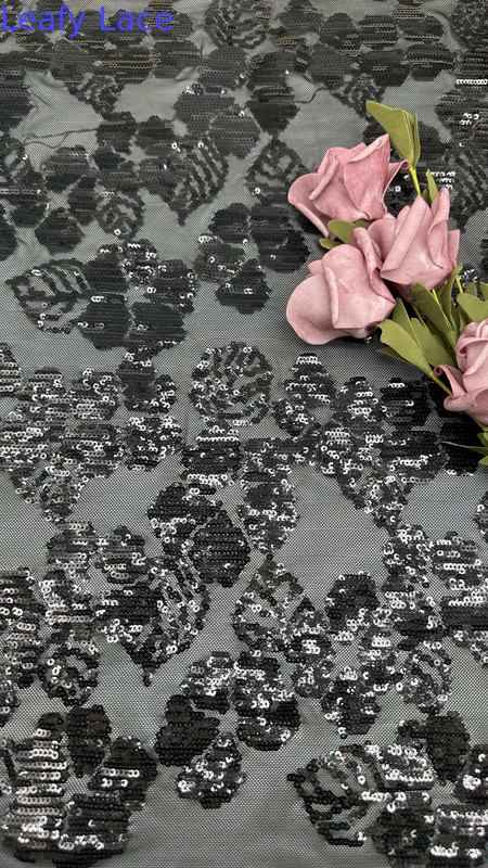| ハイライト: | ブラック スパンコール レース生地,刺身のセキーン・ランテスの布,手作業トリミング スパンコール レース生地 |