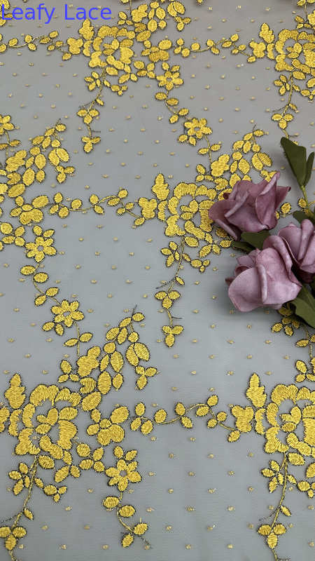 | ハイライト: | ポリエステル刺繍レース生地,カラフルなフローラル刺繍レース生地,ウェディング刺繍レース生地 |