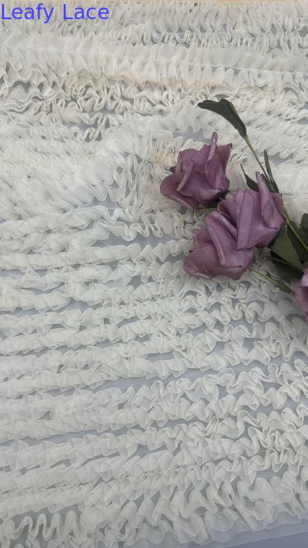 繊細な葉のモチーフが施されたレース刺繍生地は、ウェディングドレスやパーティー用ドレスに人気があり、優雅さ、質感、複雑なディテールを提供します。その製造技術は、伝統的な職人技と最新のテキスタイル技術革新を融合させています。