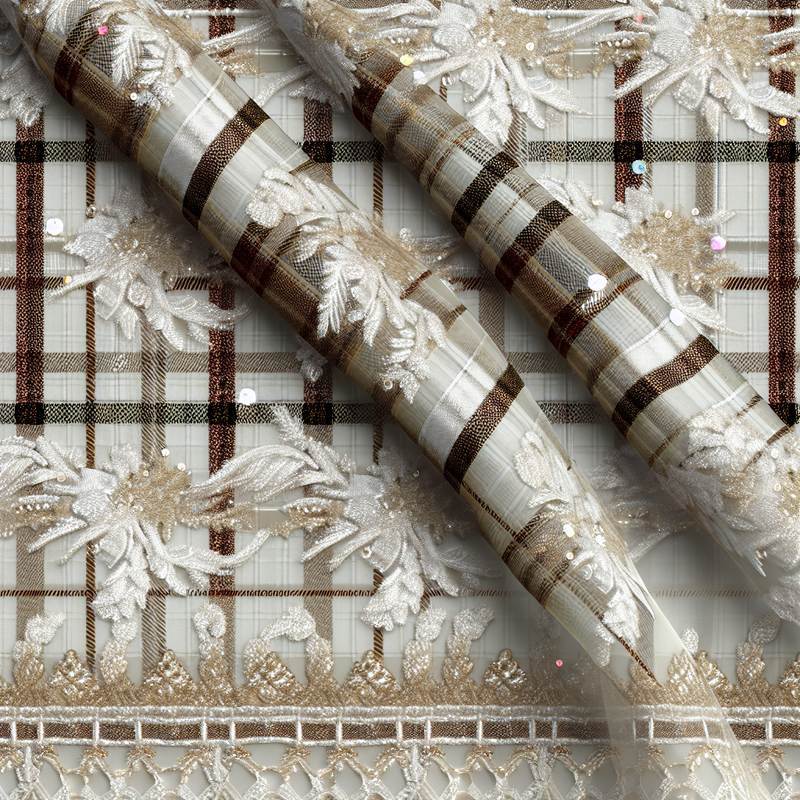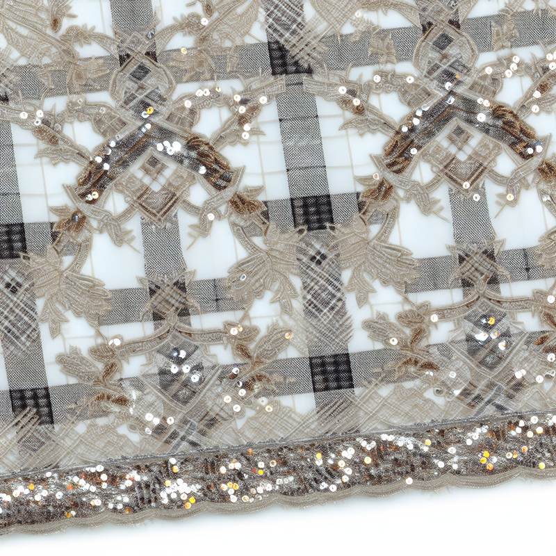 | ハイライト: | 格子柄スパンコール刺繍生地,スパンコール付きカスタマイズレース生地,エレガントで輝く刺繍レース生地 |