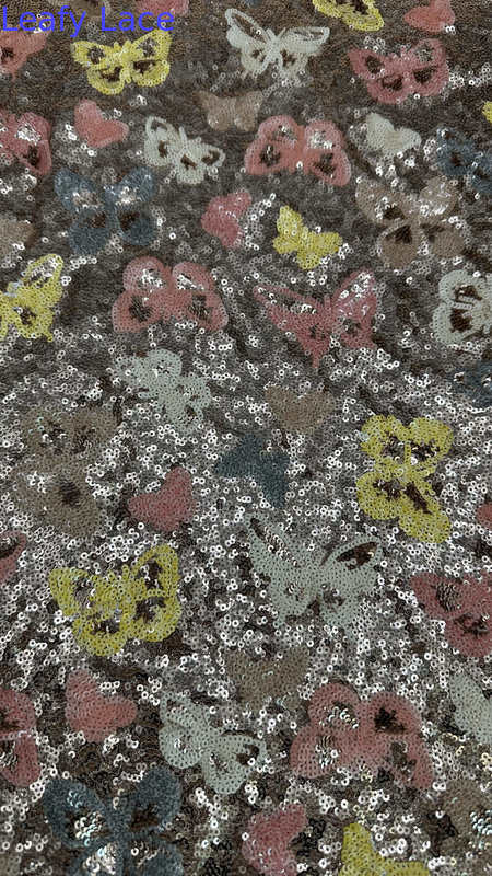 | ハイライト: | シーキン 刺?? 蕾の布,ファッション用エレガントな網織物,刺身のセキーン面 |