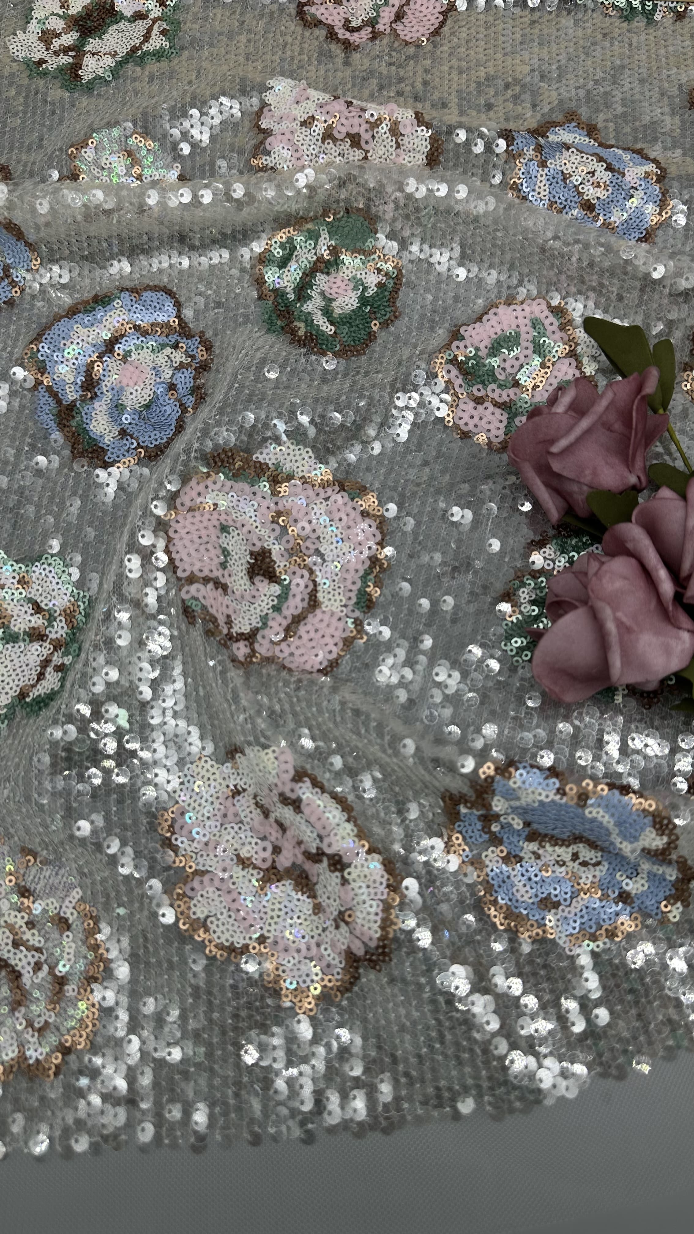 | ハイライト: | custom lace wedding fabric,sequin embroidered lace fabric,luxury wedding gown fabric |