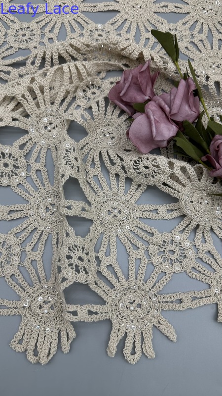 | ハイライト: | 綿のかぎ針編みレース生地,スパンコールブライダルレーストリム,ガウン用リーフギピュールレース |