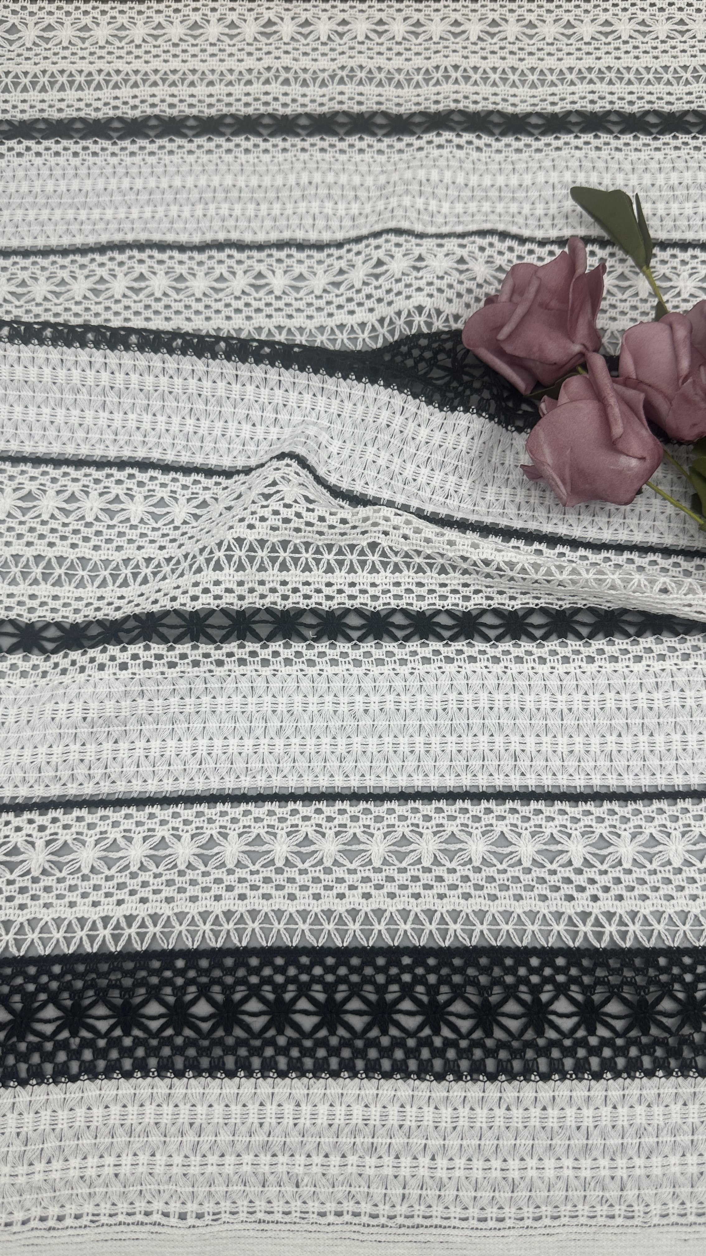 | ハイライト: | black white guipure lace fabric,elegant embroidered bridal lace,luxury hollow-up lace fabric |
