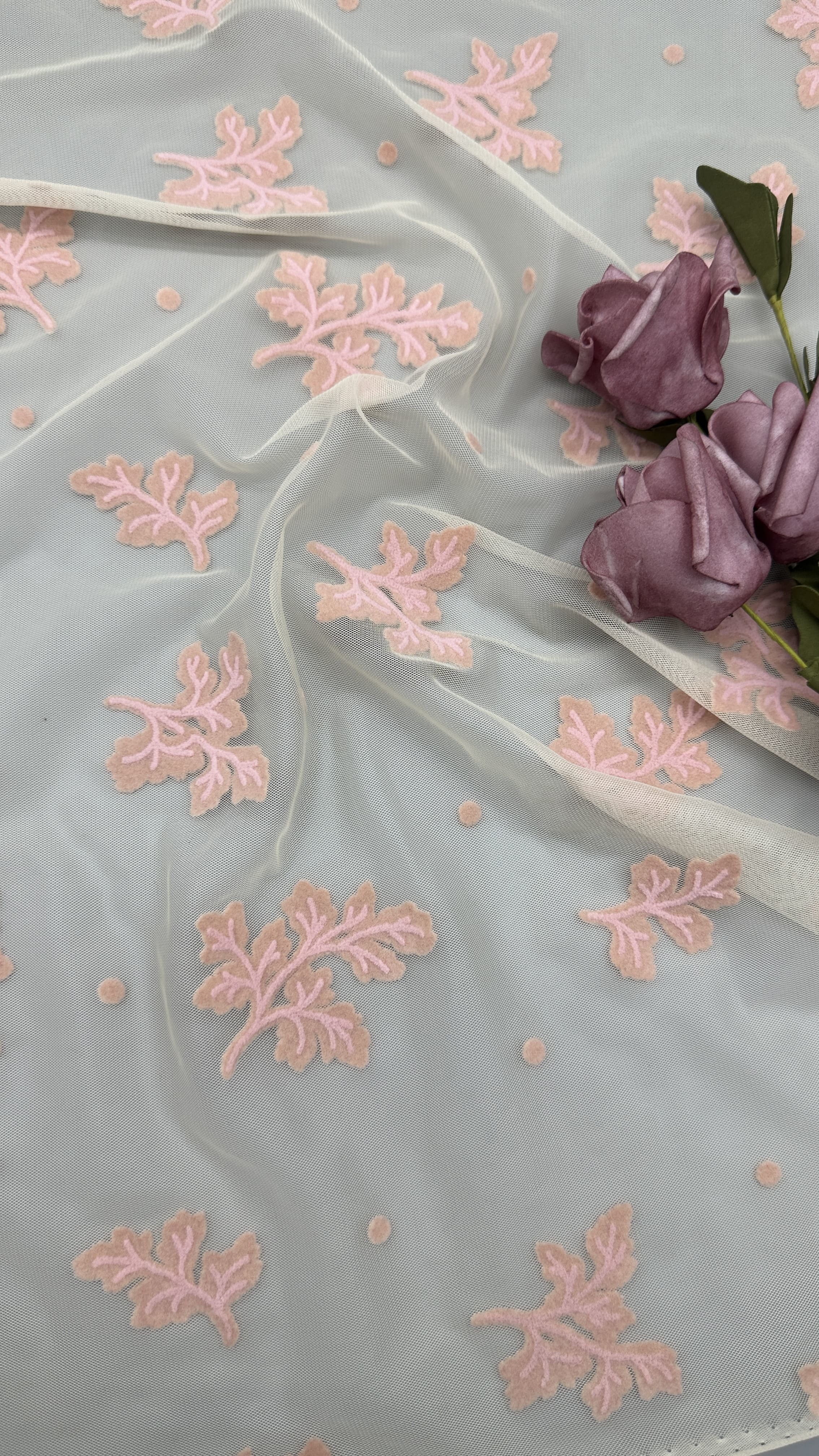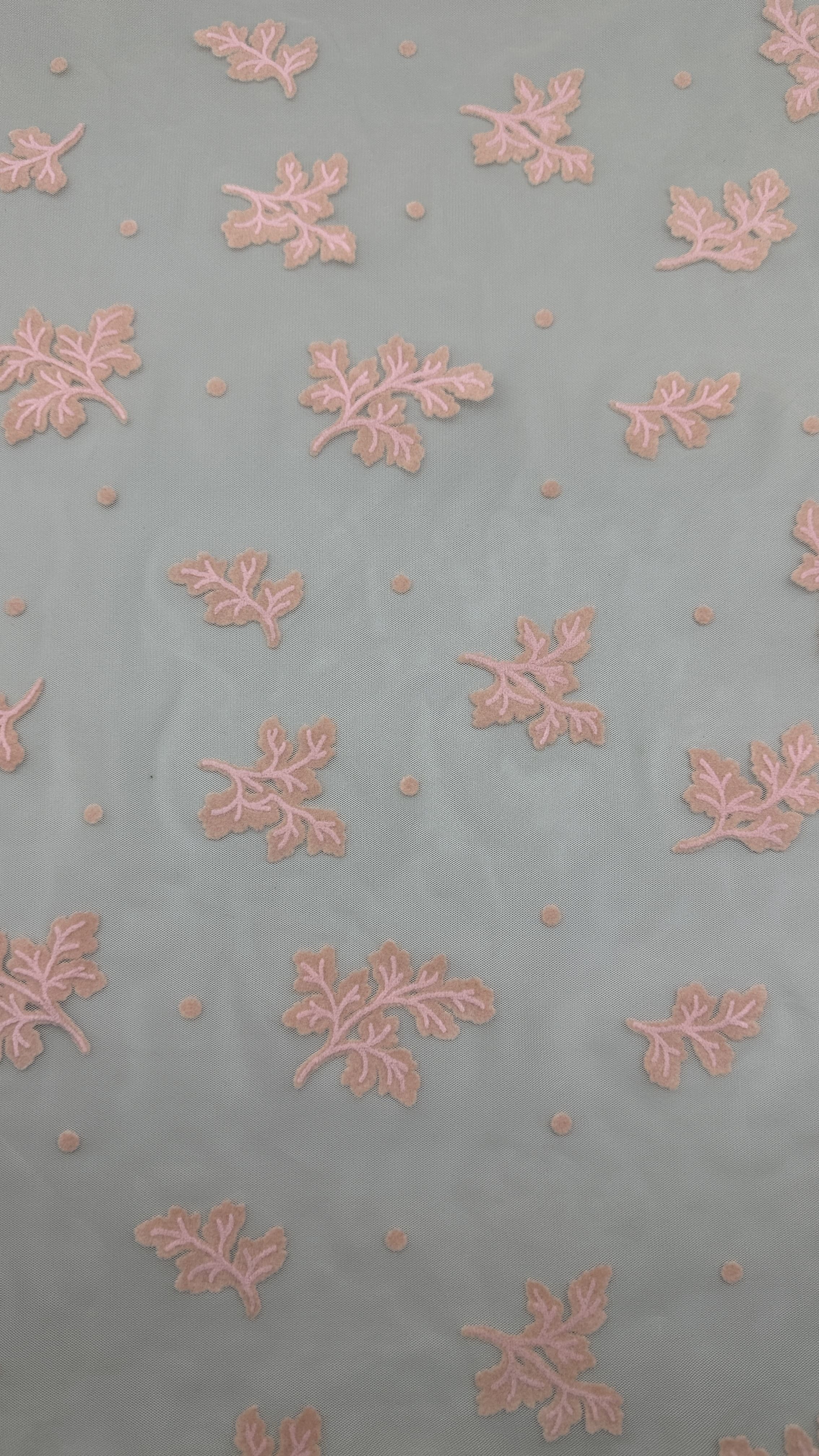 | ハイライト: | flocked mesh lace fabric,customized leafy fabric design,elegant flocked mesh material |