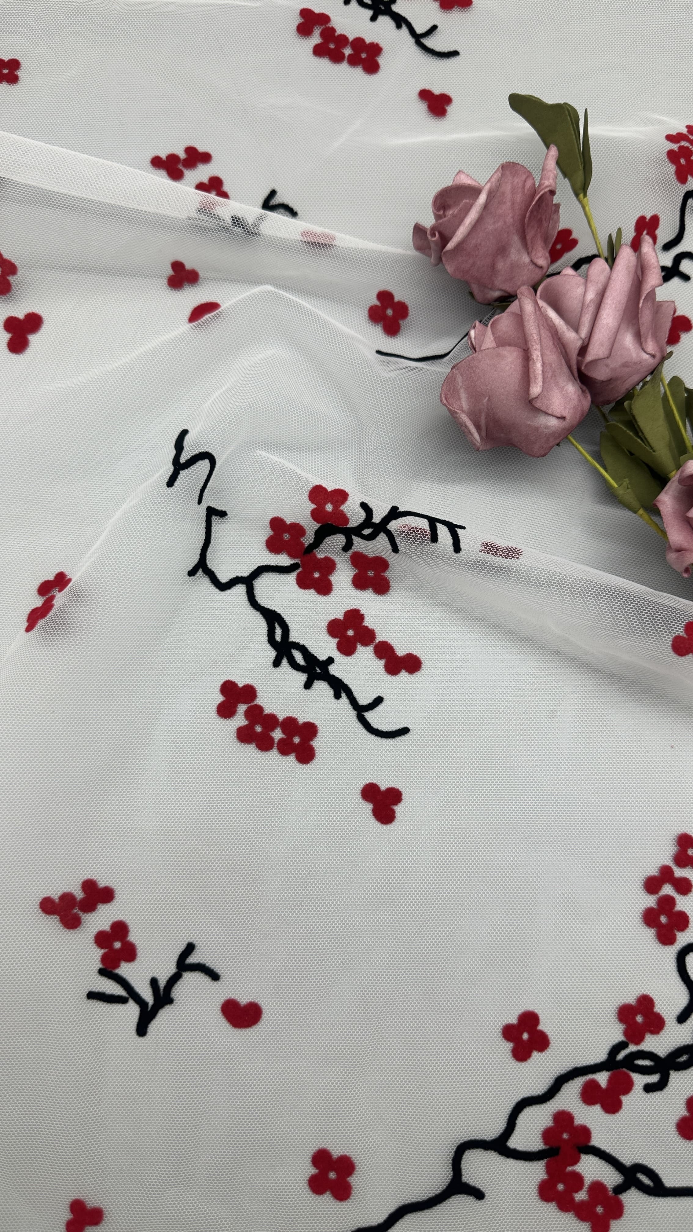 | ハイライト: | flocked mesh lace fabric,traditional snowflowers fabric,elegant customized lace fabric |