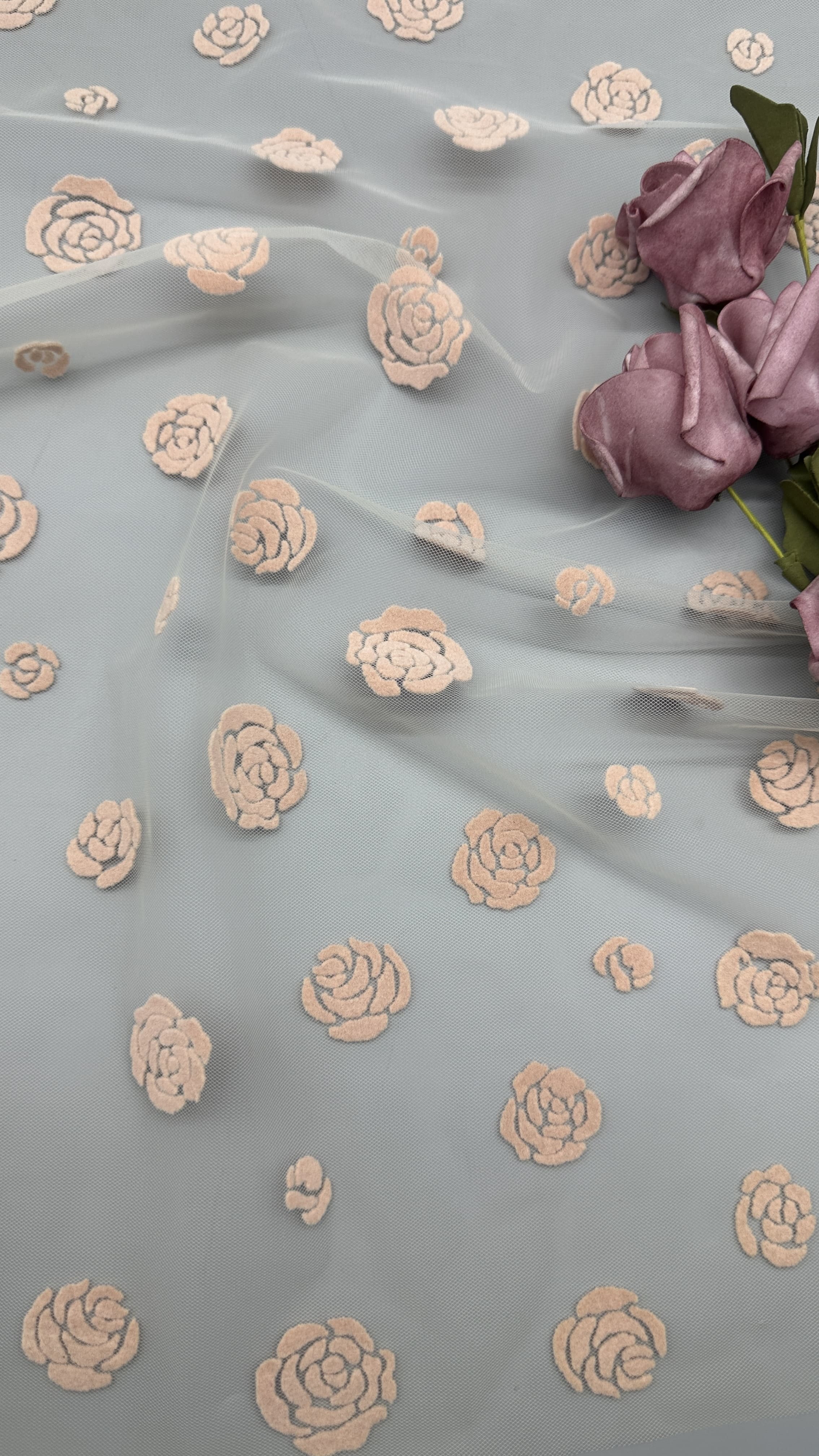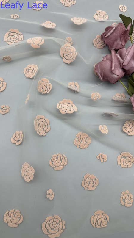 | ハイライト: | yellow rose flocked mesh fabric,elegant flocked lace fabric,luxury customized mesh fabric |