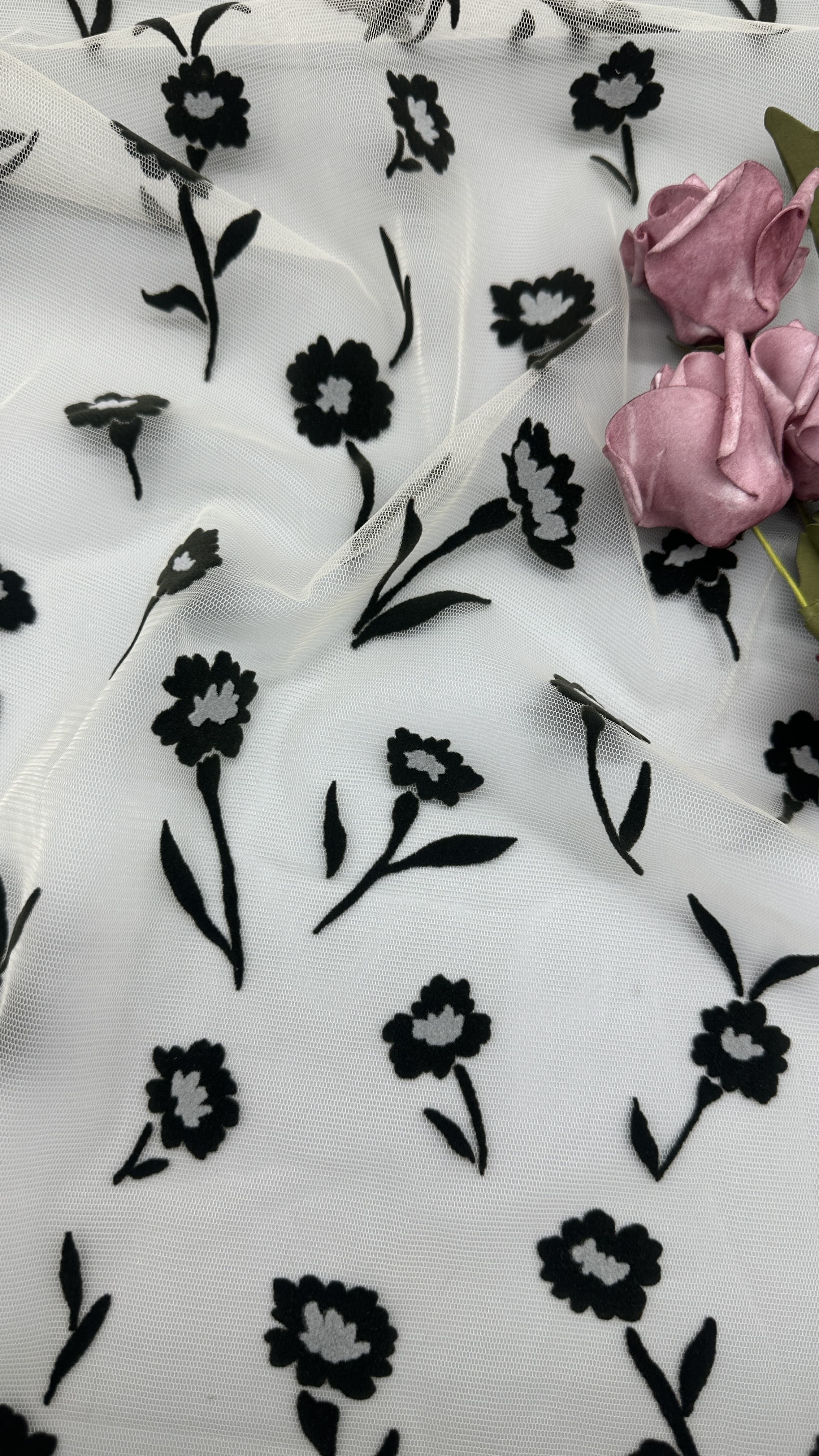 | ハイライト: | flocked mesh lace fabric,customized flower design fabric,elegant flocked mesh fabric |
