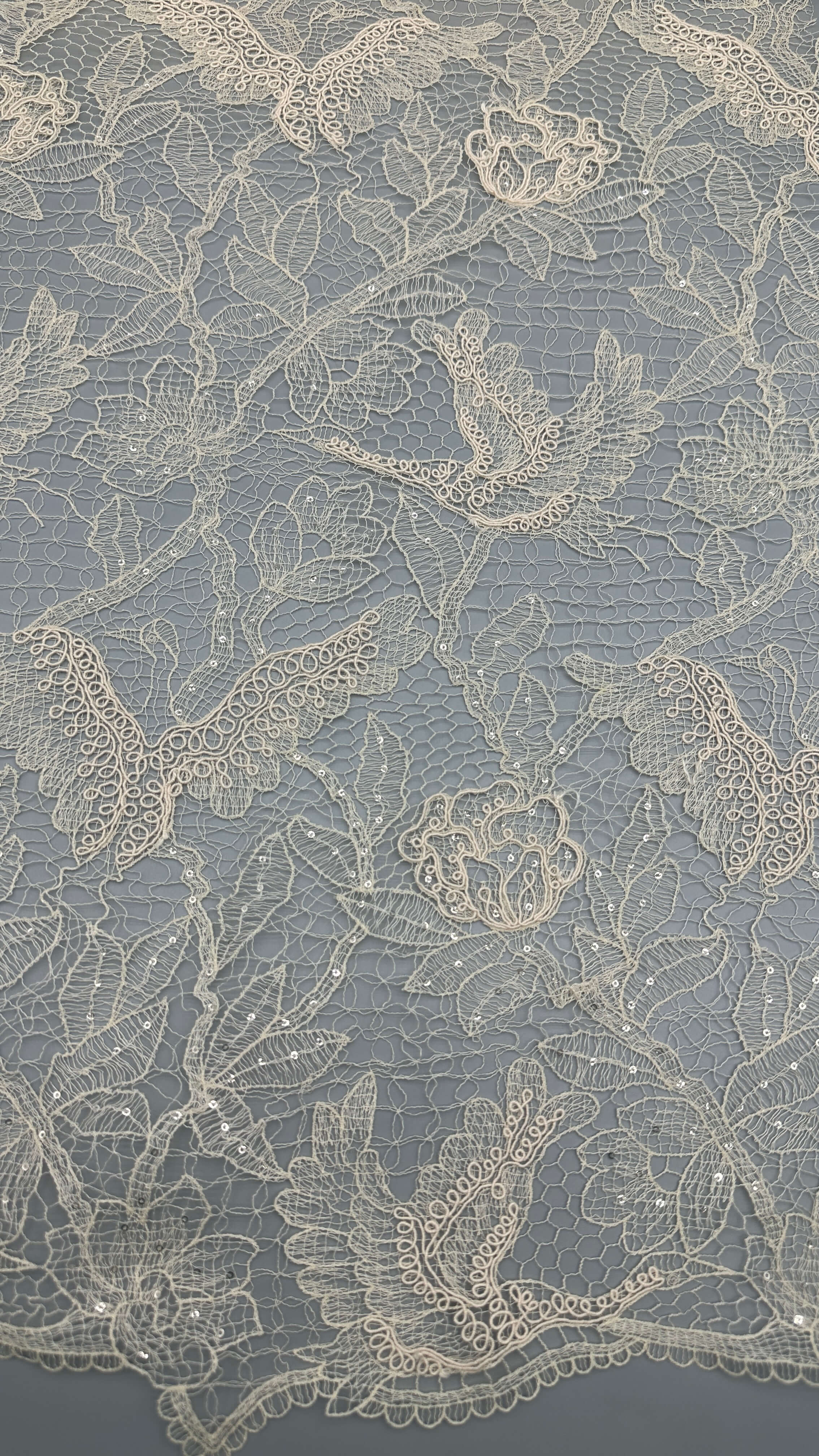 | ハイライト: | ガウン用刺繍レース生地,カラフルなスパンコールレースウェディング生地,くり抜きデザイン刺繍レース |